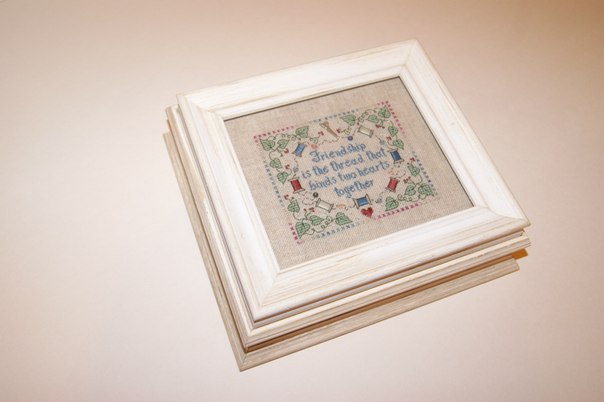 Яночка, я в восторге! Прекрасный семплер! Все детали с любовью вышивались! И сердечки красивые, и катушки ниток, ножнички классные и фраза очень хорошая. А уж идея со шкатулкой просто выше всяких похвал !