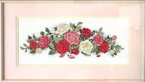 19 мая 2012 Начала новый процесс. Каюсь! Но не удержалась я... Давно хотела попробовать что-то на равномерке. Давно хотела эти розы! Вобщем, набор Dimensions, Spray of roses (03679). Канву заменила на равномерку, не хочу фон с дырками. Полагалось вышивать в 3 нити, я так и начала, но мне не понравилось. Как-то грубовато выходило и неровно, к тому же не удобно в 3 нити вышивать. Начала вышивать в 2. Может немного прозрачно получается, но вроде нормально смотрится - это же цветы. Сложностей в наборе нет, только примерно 177 фр. узелков в конце , а так - крест, полукрест, простейший бэк. Самая настоящая отдыхалочка. Схема простая. Нитки - ЧУДО! Никакого сравнения с современным Димом! Гладенькие, лоснящиеся, не махрятся, не истоньшаются. Ими вышивать - одно удовольствие. И крепкие, как будто и не прошло 23 года. bambrik, чеба и fikus-1 сказали спасибо Поделиться сообщением Ссылка на сообщение