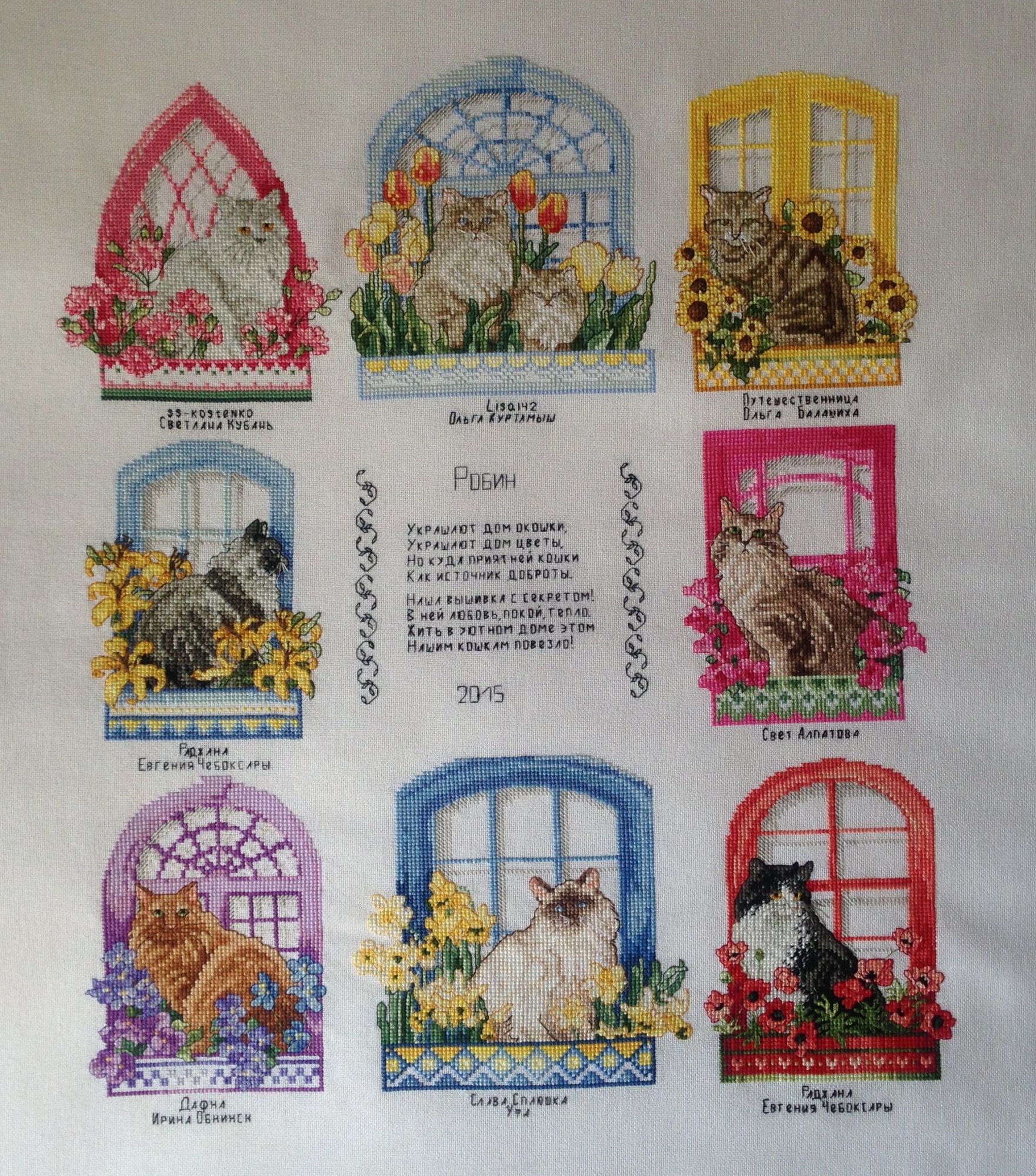 2 июля 2016 Сегодня я начну с самого важного, интересного, необычного и долгожданного. Это мой СЮРПРИЗНЫЙ РОБИН!!! Да, да, да именно большими буквами. Он того стоит. Тема была задана - кошки. А вот какими эти кошки будут я не знала. Что только я себе не представляла за эти полтора года. Но РОИБН превзошел все мои ожидания. Он просто великолепен!!!! Девочки мои, родные, дорогие, любимые спасибо ОГРОМНОЕ!!!! И отдельное ОГРОМНОЕ СПАСИБО МарСанне за стихи. Очень трогательные, я даже расплакалась пока читала Тысяча всем поцелуев!!!! Далее мое скромное творчество Подросла Леди Мяу Начался и закончился процесс. Конфетка от Леночки (Liana). РТО Рысь. Приятный процесс. К набору никаких замечаний нет. Ниточек скромно в набор положили, но всех хватило. Вот такая красавица получилась. Хоть и дикая,но все равно кошка И достала из дальнего угла свой заброшенный Риолис "Доброго утра". Бросила, потому что категорически не нравилось шить через одну нить основы. Очень неудобно, и цветочки хотелось размером по-больше. Пролежали они в забвении больше года. Пока не решила заменить Лугану 25 на Бритни 29 и стала шить через 2 ниточки основы. Нитки пришлось подбирать, так как тех что в наборе не хватило бы. В наборе Анхор и подбирала Анхор. Но некоторые цвета подобрать идеально не получилось. При хорошем освещении наблюдается некоторое отличие в оттенках. Напомню, чем все закончилось, и что отшито на сегодня Дорогие модераторы, не надо делать новую гаечку по Риолису. Давайте продолжим ту, что есть Хельга, liana, irisheckin и 18 других сказали спасибо Поделиться сообщением Ссылка на сообщение