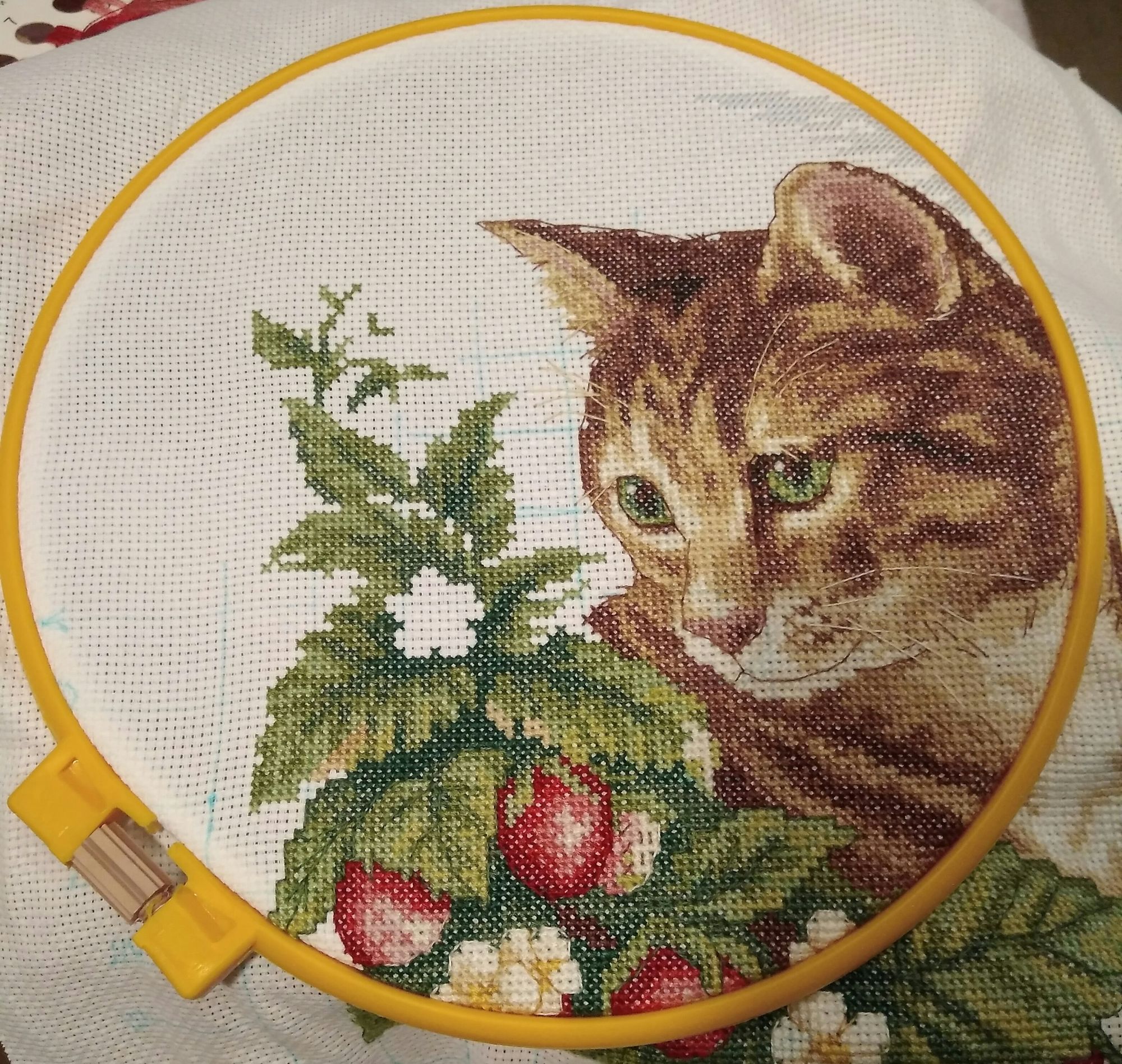 13 января 2018 Вот и закончился еще один вышивальный год. Результаты более чем скромные, шила мало. А вот новогодние праздники прошли плодотворно. Процесс, который уже закончен, но еще не показывался - Домик с розами от РТО. Много раз уже показанный на форуме и все о нем сказано. Нового ничего не добавлю. Очень приятный процесс. Закончила девушку с кошкой по схеме Have to fun схема Екатерины Гафенко. Добавила бисер кошке Марте было и стало И новый процесс. Кошка в клубнике от Кларт. Это мой первый Кларт. Набор порадовал комплектацией, все очень достойно. В планах на этот год пока только два пункта, дошить недоделки и что-нибудь для души ) Лена1973, irinka-mandarinka, Сибирская Кошка и 12 других сказали спасибо Поделиться сообщением Ссылка на сообщение