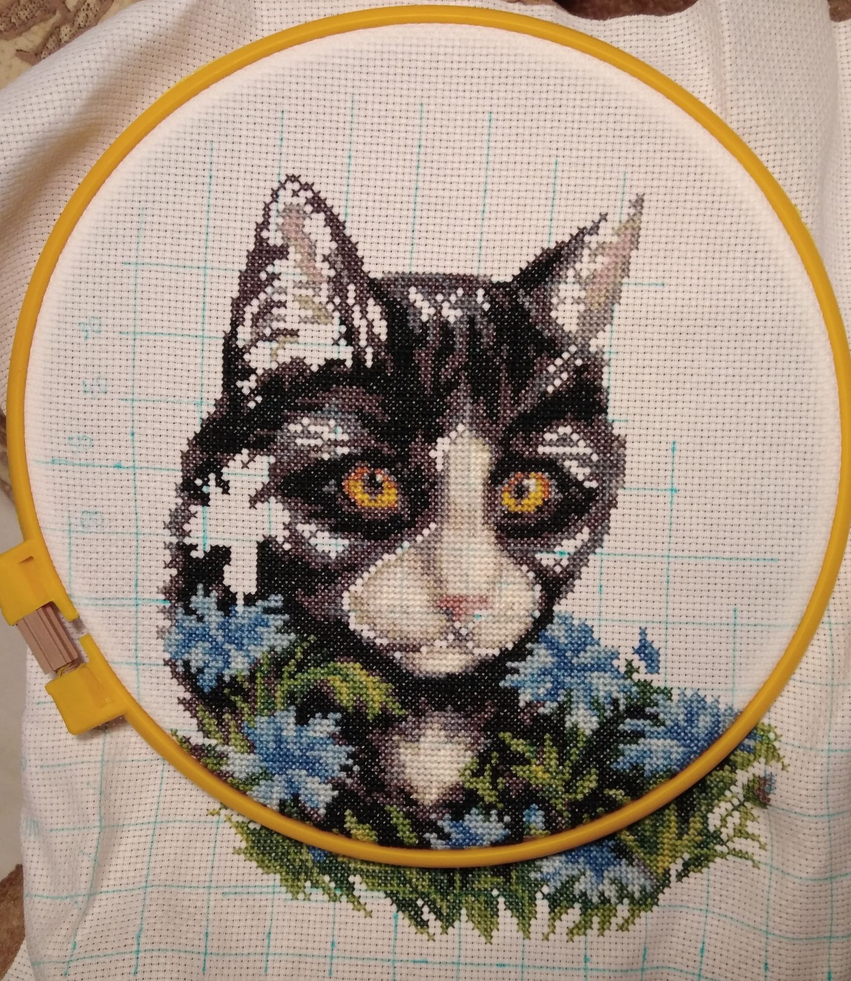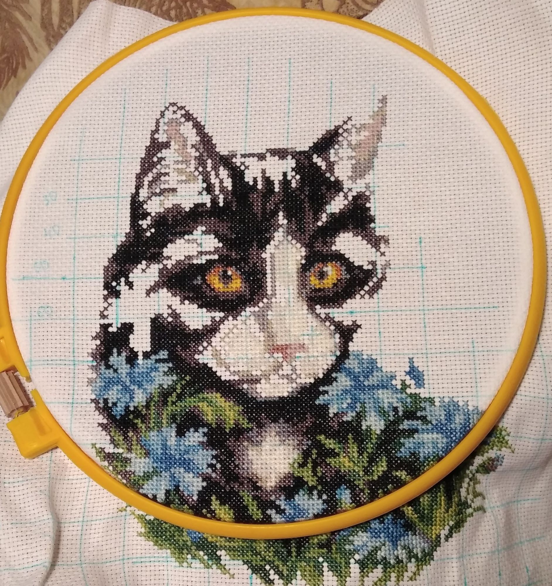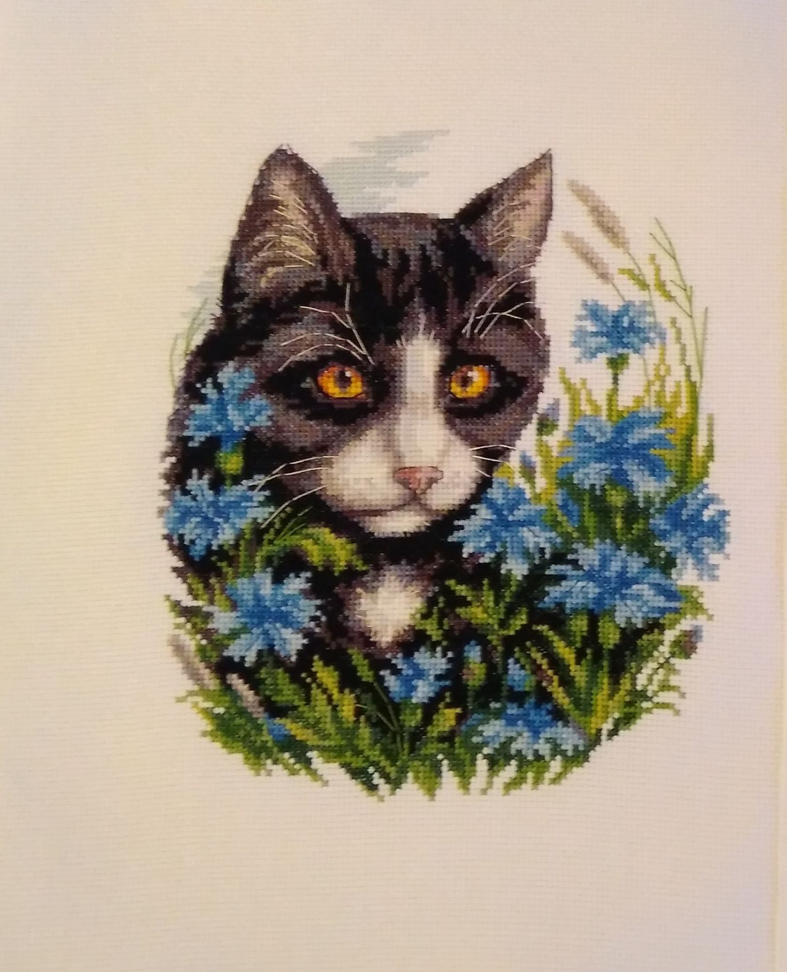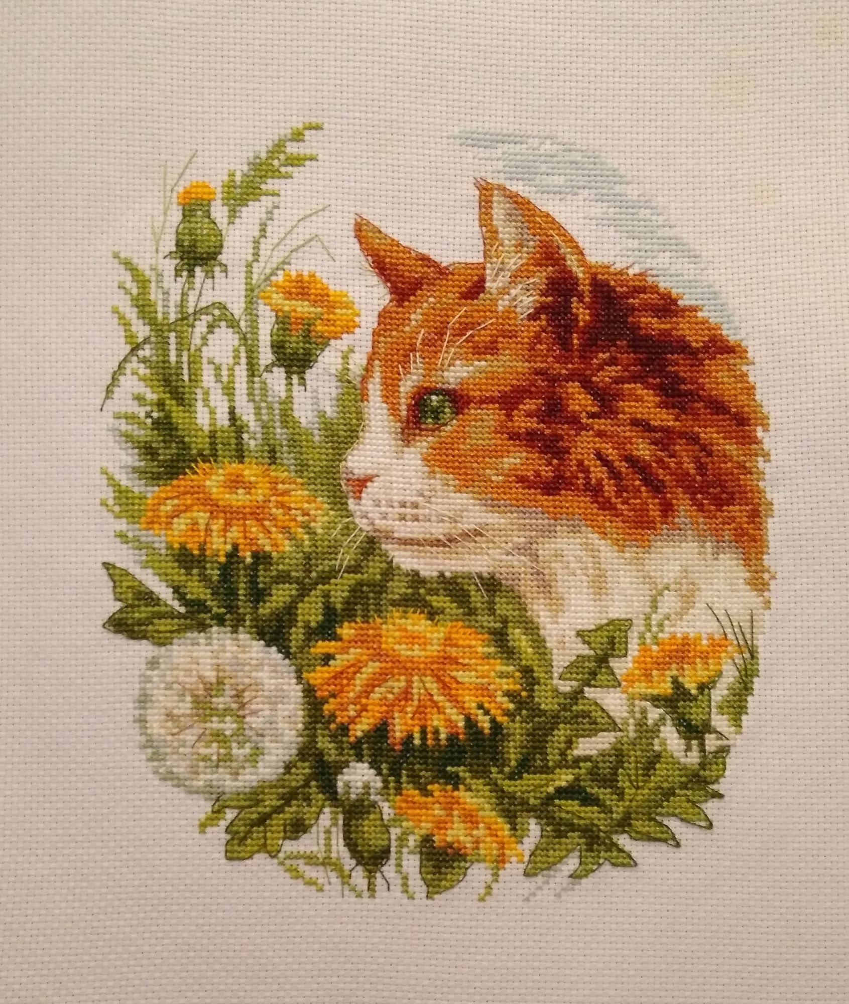 22 апреля 2018 Вот и готов Кот в васильках. Мои восторги от наборов Кларт несколько поутихли, хотя объективно, все на высоком уровне. Возможно, просто темные оттенки навевали тоску. Немного напрягло количество ниток. Но обошлось, подбирать, докупать не пришлось. Но двух оттенков хватило только-только. И новый процесс. Последний из этой серии "Кот в одуванчиках". Самый рыжий, самый любимый! nastygera, kas_julia, Nat717 и 11 других сказали спасибо Поделиться сообщением Ссылка на сообщение