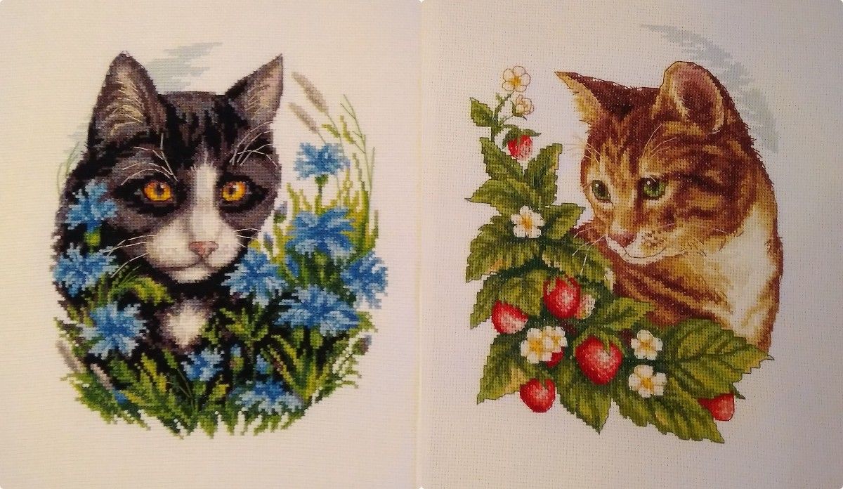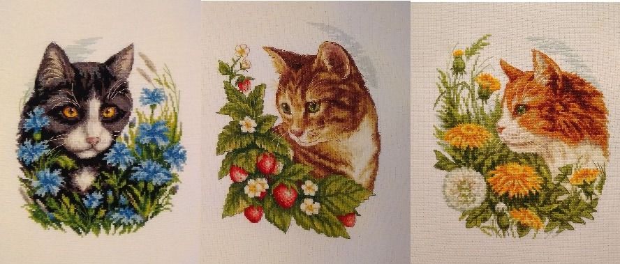 3 июня 2018 С наступлением лета! Наверняка оно где-нибудь наступило не только по календарю. У мня на градуснике +2. Всегда считала, что холодный июнь - это +15. Как же я ошибалась ))). Но, пришла я сегодня поговорить не только о погоде... Закончен рыжий кот. Хорош, хулиган! О Кларте, по прежнему высокого мнения. Но это ни разу не серия, как кажется на первый взгляд. Во первых и в главных - разный размер. Пришлось подгонять. И если у васильков с одуванчиками разница небольшая, в 3 ряда. То у клубники пришлось сокращать 10 рядов. И во вторых, в рыжем коте много полукрестиков в шубке, чего у других котиков нет. Но, все равно, троица замечательная получилась И новый процесс. Давно желанный и неожиданно приобретенный. Черный кот от РТО. nastygera, malenta, nogres и 6 других сказали спасибо Поделиться сообщением Ссылка на сообщение