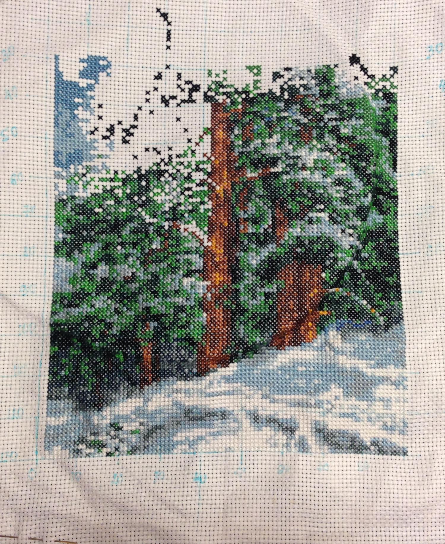 14 ноября 2013 День отчета. Но отчитаться особо не чем. Только чуть сосенки подросли. А с березой у меня авария случилась. Канву расчертила на 10 клеточек в ширину больше. Как меня так угораздило, объяснить затрудняюсь. Так что все, что справа было отшито,(а шила я в основном там) пришлось пороть. И даже не столько обидно, сколько снова беспокоюсь за количество ниточек. Отшито то было прилично. Сейчас востанавливаю руины. Но есть и положительный момент. С той минуты как начала снова шить у меня не завязалось ни одного узелка. Словно кто-то свыше останавливал меня этими узелками, мол не нужно так шить. Tanya_RTK, Сибирская Кошка, Пусичка Пушистая и 9 других сказали спасибо Поделиться сообщением Ссылка на сообщение
