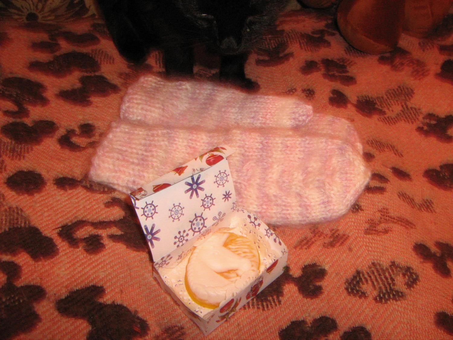 18 января 2014 Annette_S, elis, gracy_trefoil, Lilyana, M@rgarita, Meri Poppins, Nat717, Ofelia, Peppi, veravas, Евгения Чичкова, Маняша, СветикСемицветик, Юнона,Ирина-Катерина, sunny981, МарСанна, Каори, innesa, Nat717, paferova, Отельное спасибо Светочке Костенко за милый подарок к празднику.Остаточки от желанного набора, который я безуспешно пыталась найти и очаровательный птеньчик. Птеньчик не простой - это держатель ля салфеток. Очень интересная идея и замечательное исполнение. И еще много-много теплых пожеланий. Теперь можно и про зимний сюрприз рассказать. Посвятила я его Году Лошади. И главной идеей стал набор Чаривна Мить "Единорог". Поскольку сюрприз зимний я все зеленые оттенки заменила на сине-голубые. Канву поменяла на Аиду 14, чтобы размер был побольше. Единорога шила ниточками из набора, а фон нитками ДМС крестом в одну нить. Очень к стати мне это понравилось, так как пропала проблема перекрученных ниточек. Бэк золотыми ниточками делать не стала, мне кажется бэк на подушке не очень уместен. А вот звездочки святящимися ниточками вышила. Но с ними случилась неприятность. После того, как уже все было сшито, мне показалось, что подушка пахнет пылью и я решила ее освежить. Сначала в порошке, потом в кондиционере. А когда уже все высохло и начала гладить обнаружила, что светящиеся ниточки съежились, потемнели и местами даже полопались. Пришлось все отпарывать. будьте осторожны с этими ниточками они нежные и капризные. В итоге получилась вот такая подушка. Придумать идею оказалось несложно. А вот купить потом ткань и особенно бахрому оказалось очень сложно. Почти все магазины обегала, пока нашла то, что хотела. Еще из рукодельного были варежки собственноручно связанные и кусочек ароматного мыла, результат моего посещения мастер-класса. Это я, конечно, сфотать забыла, поэтому позаимствовала фото моей получательницы, Любаши - Сибирской кошки. Пусичка Пушистая, Meri Poppins, Евгения Чичкова и 9 других сказали спасибо Поделиться сообщением Ссылка на сообщение