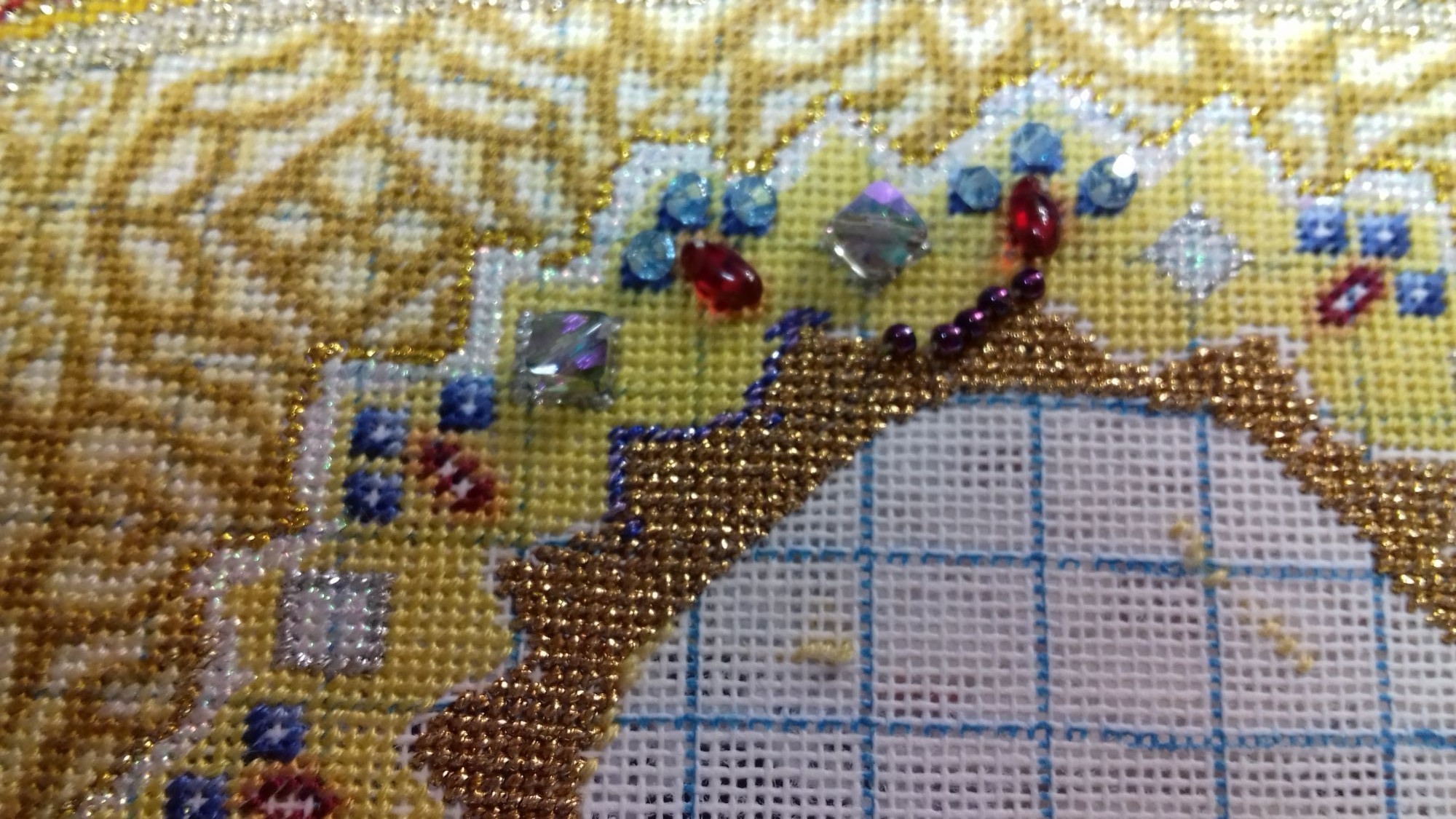 1 июня 2017 6 часов назад, Хельга сказал: Мне по фото крейник больше нравится. А вообще очень красиво получается! Да, Оль. Но этот крейник тонковат, он как бы "проваливается", надо потолще. Спасибо 5 часов назад, Inna_D сказал: О! Шикарно, Оля! Очень нравится. Камни очень хорошо смотрятся, а вот про бисер не знаю что сказать.... мне кажется крупновато и оттенок не очень, в синий было б лучше. Я б крейник пока сделала, его немного, а потом постираешь, погладишь, все камни пришьёшь и будет понятно надо или не надо на нимбе бисер. хотя мне кажется он картину простит. Инна, спасибо! . Да я забыла сказать, что бисер просто так прилепила, конечно, он крупный, да и некрасивый. Думаю, петитный бисер может подойдет. А если крейник, то тоже надо другой. Ну времени еще - вагон, пока все дошью, придумаю что-нибудь. Хельга, Inna_D и Svetl@n@ сказали спасибо Поделиться сообщением Ссылка на сообщение