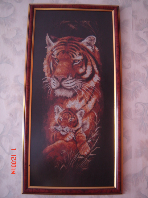 Тигрица с тигренком. Сейчас вот у Александры в магазине нашла тигрицу с двумя тигрятами, буду вышивать.