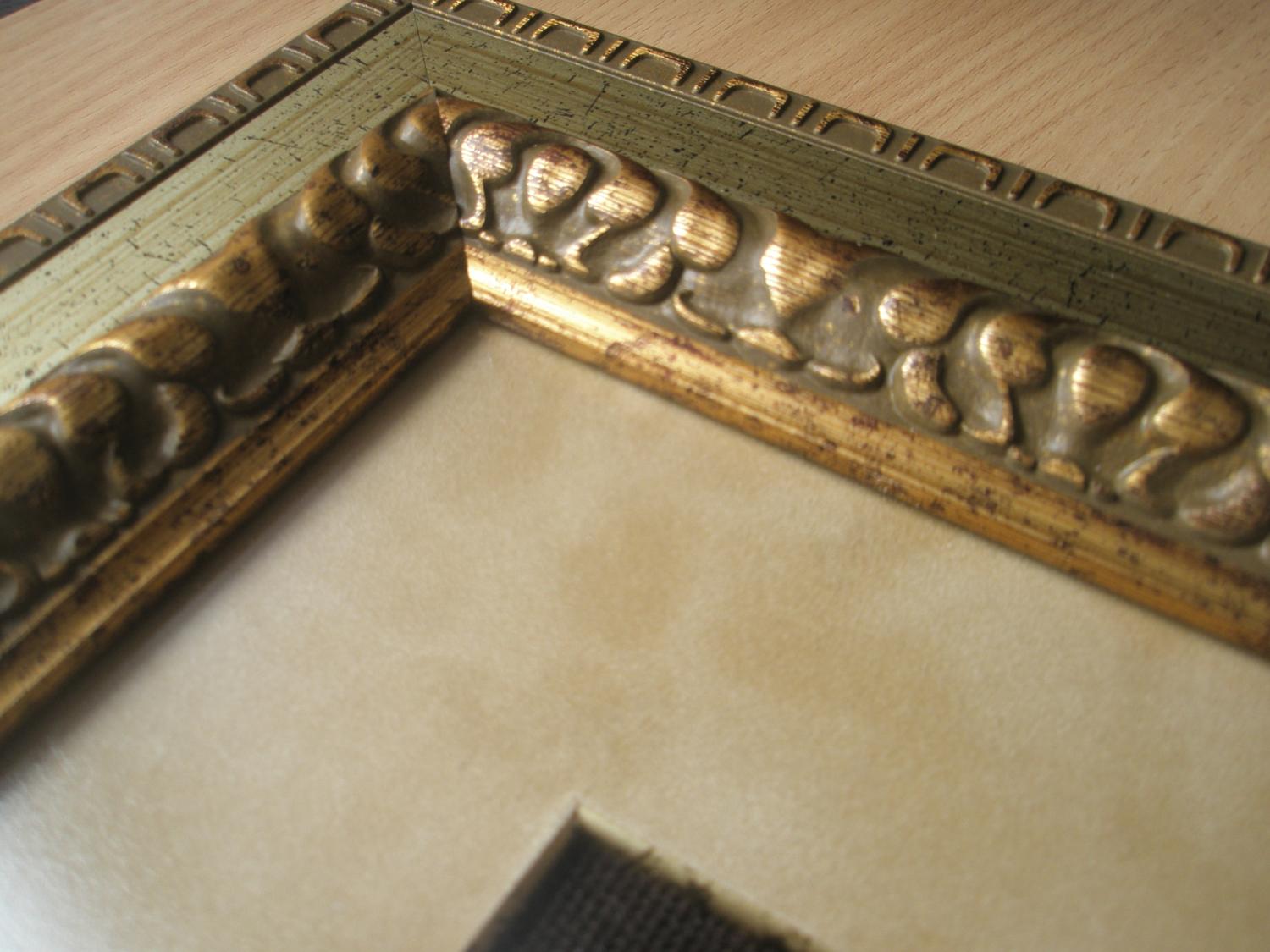 Использованы - пластиковый багет, бархатное паспарту, слип - состаренное золото и стекло-антиблик.