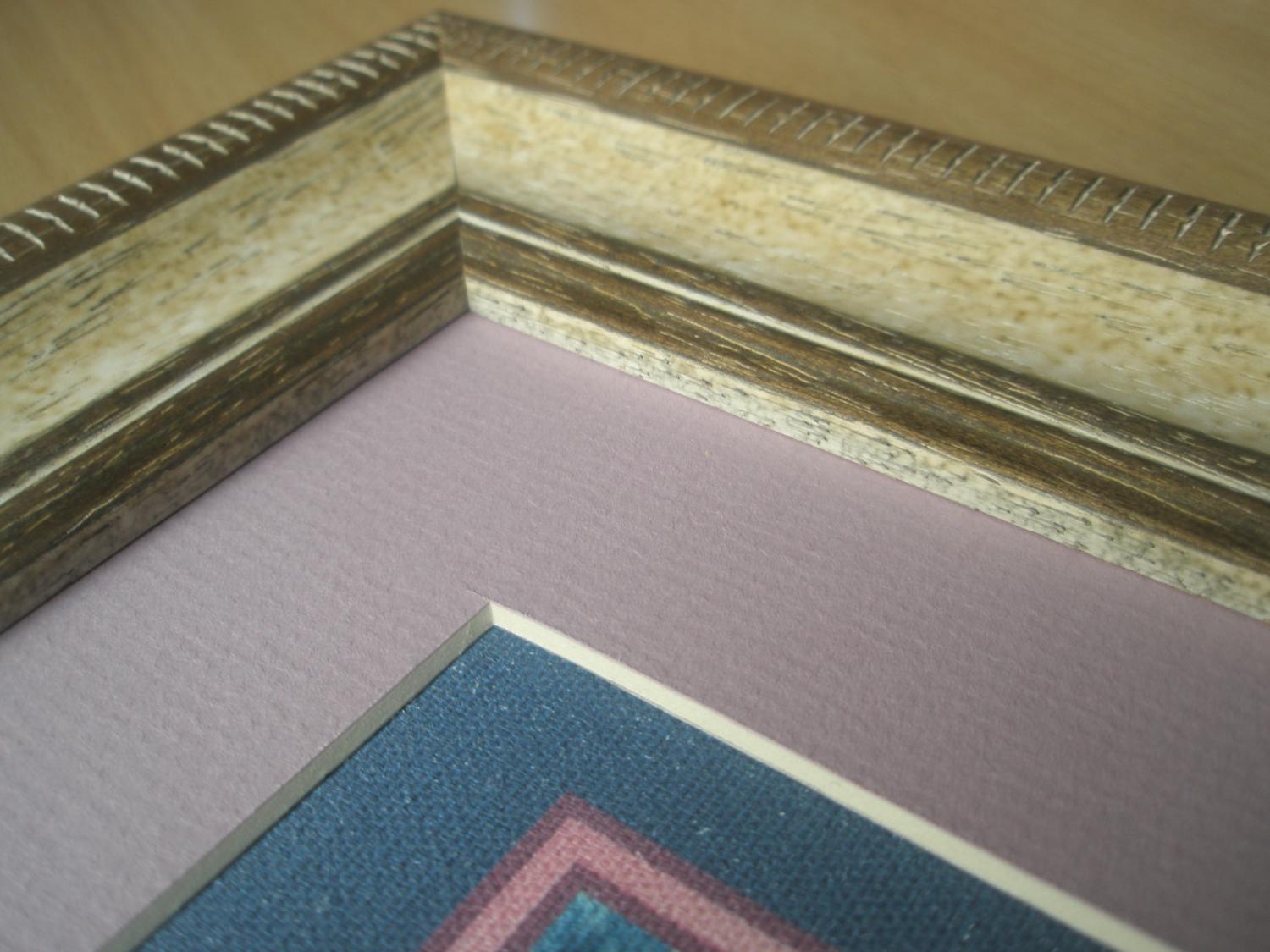 Деревянный багет и простое паспарту. Общий размер 49х40см.