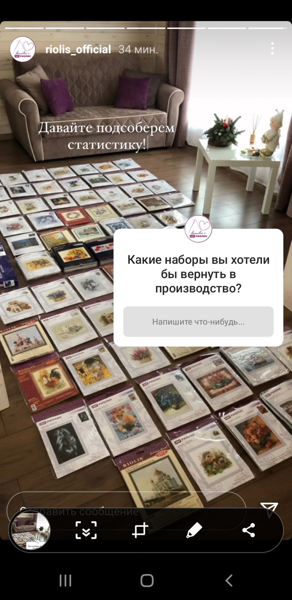 18 января 2022 У меня знакомство с этим производителем началось еще со школьных уроков труда. У нас во 2 семестре программа была такая, что мы покупали набор для вышивания и весь семестр его шили. И в части приобретения учительница показала нам каталог Риолиса (это был 2006-2007 год примерно). Ну и заверте... Я хз что в наборах и сюжетах Риолиса такого, что их тянет покупать и вышивать. К другим производителям душа особо не лежит. (Несмотря на это имеется штук 10 вышитых работ от Жар-птицы, плюс в коробке наборов 8 от Алисы...) Melissa299, Аленка-2, Betta и 4 других сказали спасибо Поделиться сообщением Ссылка на сообщение
