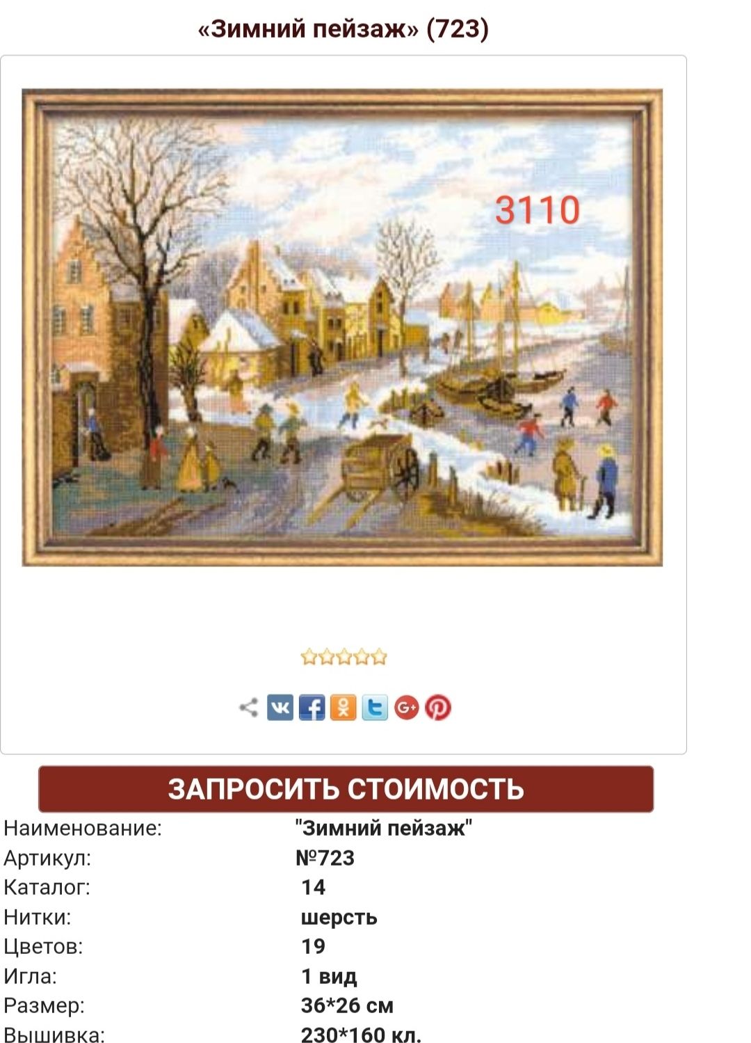 15 июля 2022 14.07.2022 в 12:26, Tatiana Ch. сказал(а): А я заказала стоимость набора "Снежная зима", это тот сюжет с лошадкой, ещё жду сообщения, быть может кто-то уже интересовался этим набором? 23 часа назад, Океан сказал(а): Я интересовалась, еще в первый день, как появилось объявление. До сих пор жду ответа. Получила ответ. Лошадка стоит 3200. Tatiana Ch., Толика, lvlist и 4 других сказали спасибо Поделиться сообщением Ссылка на сообщение