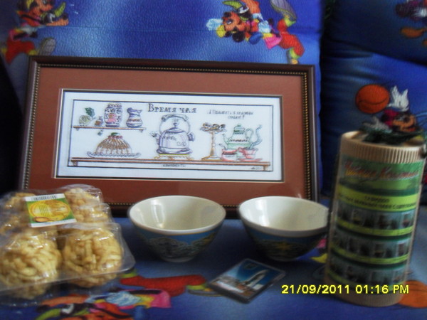 21 сентября 2011 Ура-ура!!! Я тоже дождалась своей посылочки!!! Только не бейте меня сильно, но я не знаю от кого Письма в посылке не было, а по фамилии и адресу кто это не пойму!В общем сюрприз пришёл от Моисеевой Виктории! Викуся, спасибо тебе огромное!! Я сегодня совершенно случайно зашла на почту, даже не надеясь на то, что там что то есть, а мне вынесли не маленькую такую коробочку!!Дома распоковала, а там, вот такая красота Картина просто чудо, такая нежная и оформлена суперски, как раз мне подходит!!! Ещё там были 2 пиалки, восточные сладости чак-чак, превосходный набор из 12 сортов элитного зелёного чая и магнит с видом г.Альметьевска. Пока писала, всё думала, от кого же сюрпризик пришёл, и кажется я поняла(просмотрела прошлые игры) и если я не ошибаюсь, то прислала его Рикки! Викочка, ещё раз спасибище тебе огромное, мне очень всё понравилось!Вот ещё фото с разных ракурсов Я в таком восторге от нашей игры, жду не дождусь новогоднего сюрприза, уже даже знаю что буду делать!!! Поделиться сообщением Ссылка на сообщение
