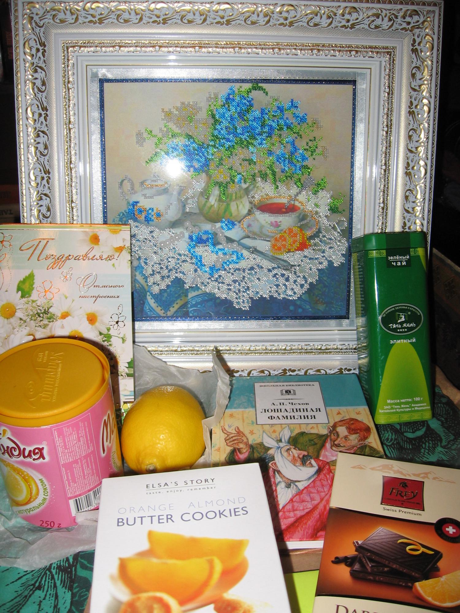 11 октября 2011 Можете плясать, так как скоро будет открыт Новогодний сюрприз. Итак: ОНО ПРИШЛО! Час борьбы с очередью на почте и я получила немаленькую посылочку. Ну уже не сюрприз от кого: Мария1981. Хорошо у Димки руки длинные, удобно было нести) Распаковывать пришлось долго... Опять же переложила эту задачу на мужские плечи (хотя он сам вцепился, пожалуй не отобрала бы). И вот сюрприз Чайно-кофейно Чеховый: Сама картинка ближе) Очень красивая вышивка бисером) Вкусная часть: Шоколадку у меня уже отобрали Т_Т И маленькое удовольствие для ванной (люблю я это дело) - Ароматизатор Грейпфрукт) Только фотка не получилась) Спасибо Маша Оценила даже моя кошка (по моему эта картинка ей очень идет) PS: извините за лаконичность, не умею я много писать) Поделиться сообщением Ссылка на сообщение
