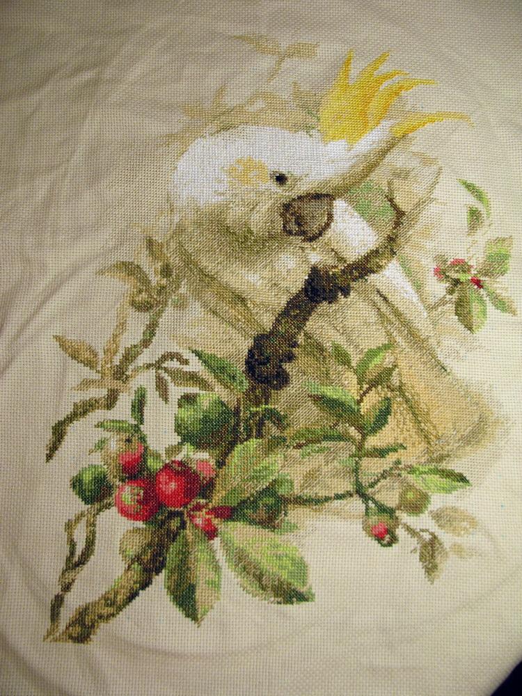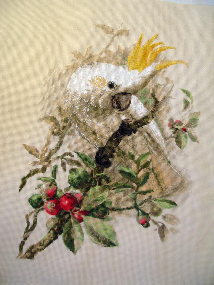 29 ноября 2015 В "Белом какаду" вышит последний крестик. остался бэк. Его не много, но как я буду находить его координаты в оперении - пока не ясно. А работу над бэком начну немного погодя - из детсада дали очередное задание одеть куклу в теплые одежды(((((((((. Так что попугай будет ждать. Показываю сегодня самые вкусные местечки этой работы. Голову с пронзительным (даже без бэка) глазом веточка, на которой птиц сидит (думаю, кофе - ну, решила так думать) Красавчик целиком marysolga, Козочка, Татуся и 3 других сказали спасибо Поделиться сообщением Ссылка на сообщение