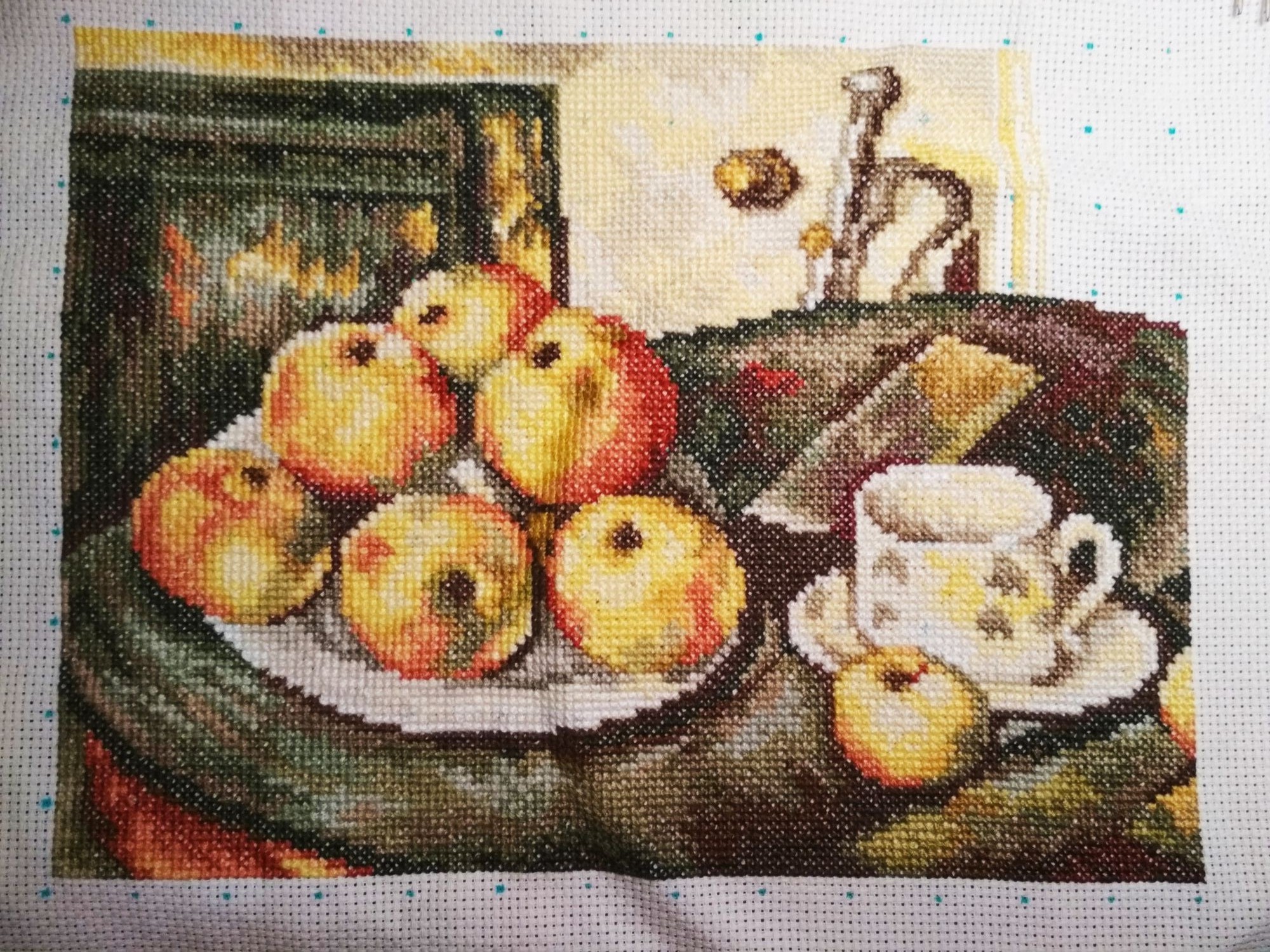 13 февраля 2019 Только что, Юнона1960 сказал(а): ... мне очень понравилось сочетание оттенков общего фона с яблочками, такие благородные тона. И очень быстро . Спасибо, Юнона! За эти оттенки я и схватила набор. А оказалось, он по картине Сезанна. А у нас в Эрмитаже его натюрморт с яблоками на синем, с белым фарфором, желто-красные, и я Сезанна не узнала в этой гамме))) Сегодня отвезла три последние работы в багетную. Довольно долго выбирали... Хотелось правильно угадать, теперь жду))) АлёNка, Юнона1960 и Moshika сказали спасибо Поделиться сообщением Ссылка на сообщение