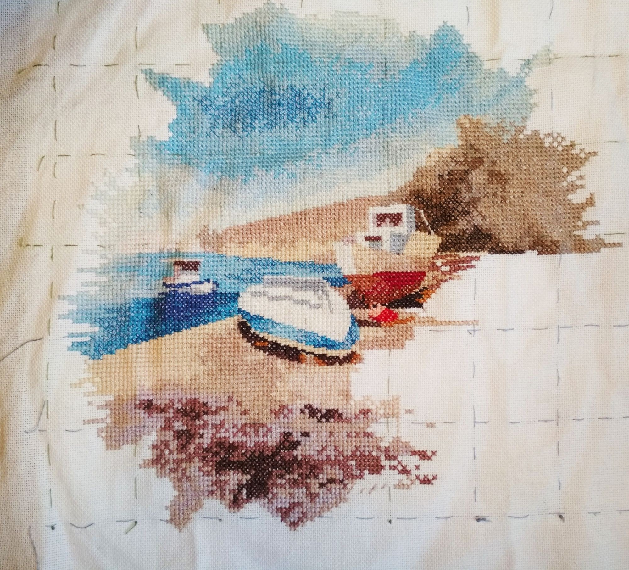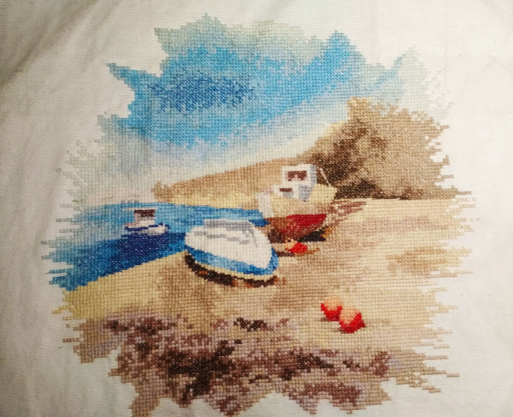 4 марта 2019 Готово 3/4 работы. На переднем плане то ли груда выброшенных на берег водорослей, то ли рыбацкие сети... Сейчас начну вышивать два красных поплавка. Последний яркий объект и кругом песок, песок... Картинка напоминает мне о моих прогулках ранним утром в Египте. У нашего отеля была самая протяженная береговая линия из всех отелей района Хургады. Часов в пять утра я бродила по берегу, фотографировала рассвет, там на краю пляжа с дикой территорией лежали рыбацкие лодки... А ещё были такие композиции на песке из старых совсем прохудившихся лодок и юкк (они цвели), агав... Не знаю, найду ли фото, они давно скинуты в какой-то накопитель titania, Nadine1, marusya64 и 7 других сказали спасибо Поделиться сообщением Ссылка на сообщение