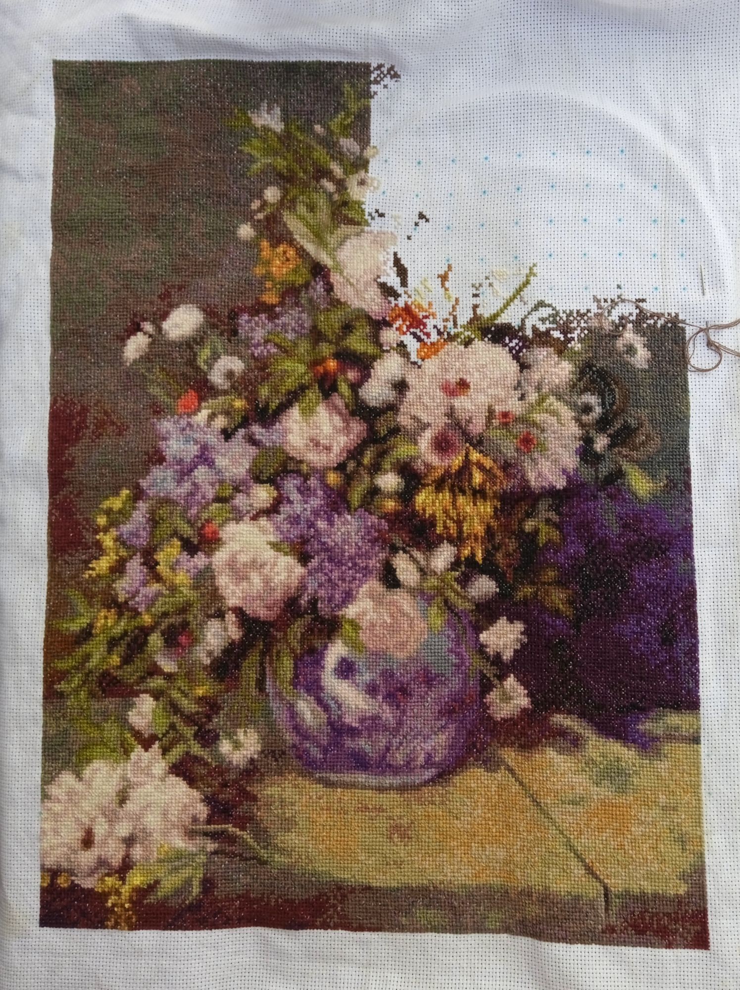 17 июля 2022 У меня сломался телефон. А на даче в 100 км от Питера без связи... У нас даже тв нет. Прямо трудно нынче без интернета. Входящие принимает, а ответить я никак не могла. Поэтому прошлый пост был только фото. А случилась неприятность. С картонного органайзера, уже изрядно потрепанного за четыре месяца, свалилась пасма зелёного цвета. Я поискала её место... Привесила к очень похожему, но не точно. Сомневалась, потом забыла... И вот вышила в результате несколько участков вместо зелёного ярко-лиловым. Выпарывать трудно было, канва 16, вокруг уже все плотно зашито. Победила, конечно, и перешила. Но урок получила. Внимание нельзя ослаблять, есть сомнения - лучше перепроверить Хозяйка смешных зверей, Сибирская Кошка, svetlana62 и 1 другой сказали спасибо Поделиться сообщением Ссылка на сообщение