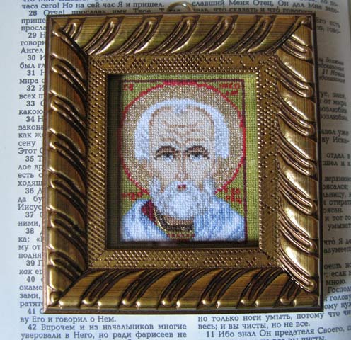 8 сентября 2012 Внучка Полина сотворила бискорню. Полностью сама придумала рисунок, сначала изобразила его на бумаге, но в ходе работы, конечно, дополняла и изменяла схему. Вышивала ирисом и мулине - выбор цветов на даче был ограничен, поэтому тут много ириса, хотя им трудно вышивать. Работа вышивалась в канун Полиного ДР, поэтому на обороте появилась надпись "11 лет. 2012". Саму идею Поля поясняет так: "В центре фигура желтая, оранжевая, терракотовая - это цвета Льва, а я ведь "лев" по гороскопу. Там еще инициалы "П" и "Ч". Вокруг центральной фигуры символы, обозначающие стихии: Воздух, Вода, Огонь и Земля. Пусть они все помогают мне в жизни". Оборотную сторону украсила фигурой, которую назвала кристаллом (а мы как раз в это время занимались тем, что выращивали в банке большой кристалл алюмокалиевых квасцов - такой опыт моя мамочка устраивала для меня, когда мне было лет 11, совпадение - тут тетя как раз подарила наборчик из магазина умных подарков), кристаллу придан цвет, который Полина называет в настояшее время одним из любимых, любимым. Ну, и еще сердечки, куда же без них! И показываю икону - Святой Николай Чудотворец. Размер вышивки 5,5х6,5 см, то есть 63х75 крестиков. Не скажу, что было легко, но с Божьей помощью у меня получилось. Дафна, veravas и fikus-1 сказали спасибо Поделиться сообщением Ссылка на сообщение