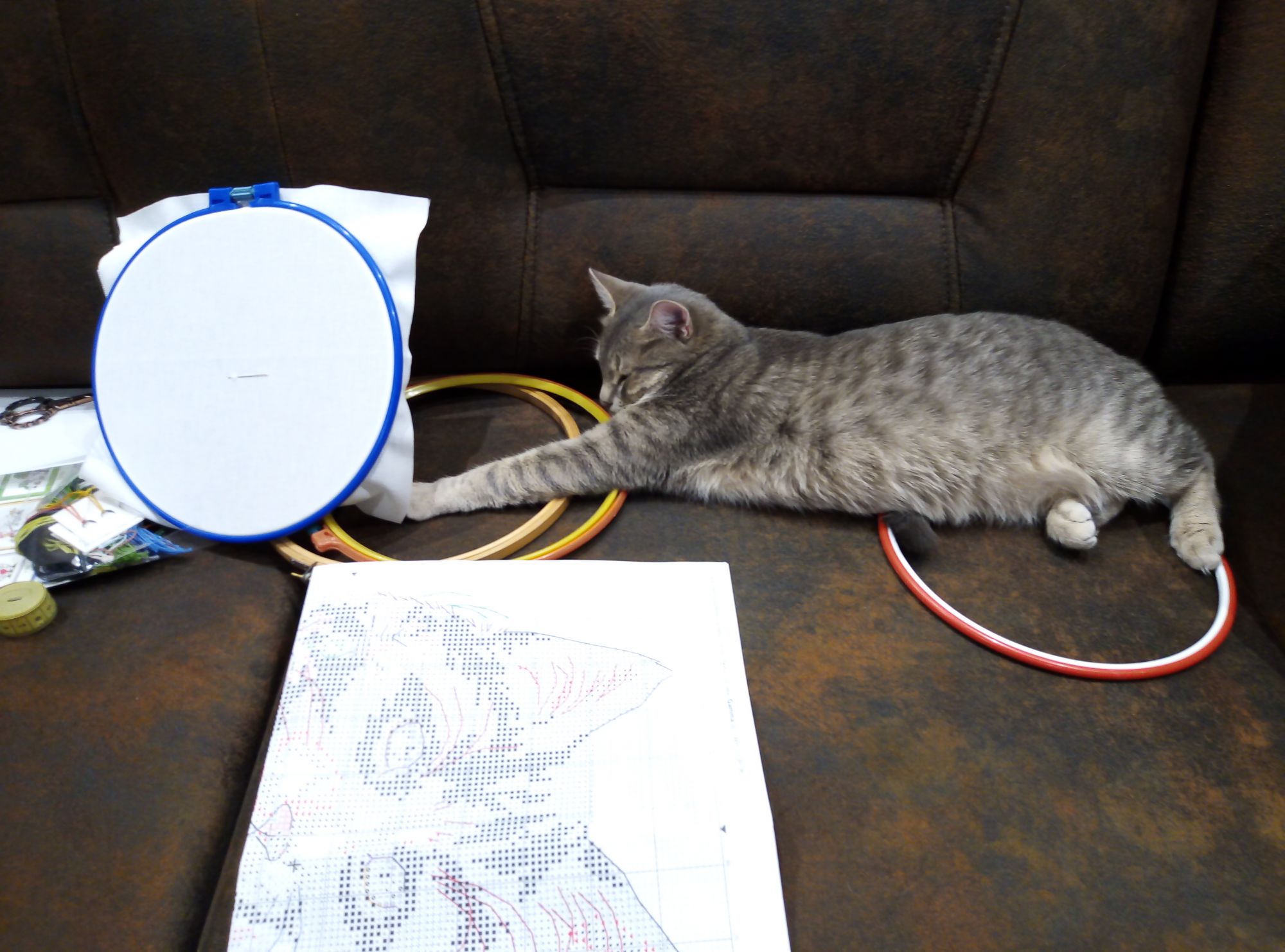 2 января 2021 С Новым годом, дорогие мои! Желаю всем нам в этом году (да и вообще всегда, чего уж), конечно, здоровья, актуально, как никогда, мира и согласия в семьях, неисчерпаемой энергии и оптимизма, творческих взлётов и воплощения в жизнь самых смелых планов! А теперь по делу.) Этот год у меня под созвездием Кота (в моём случае - котов). А потому и первый процесс этого года - портрет Томуси великолепного. Начало положено. "Кот в васильках" от Кларт. Канву заменила на белую мурано. Томуся с Фениксом помогали, как могли.) Это фото для гаечки. Всем хорошо отдохнуть и не болеть! ЛАДОМИРА, kreolka, Ксен40 и 16 других сказали спасибо Поделиться сообщением Ссылка на сообщение