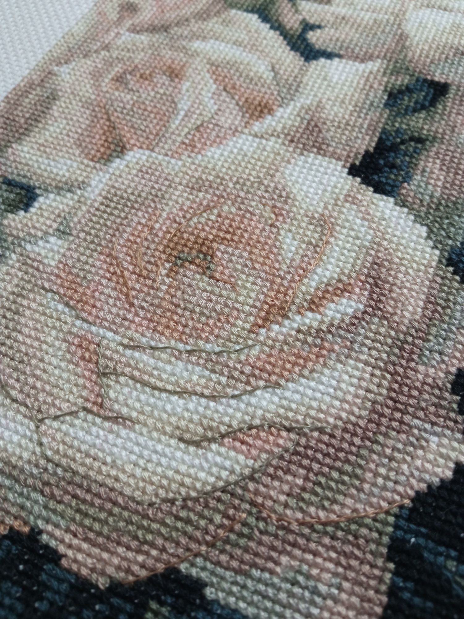 4 октября 2021 Доброго всем! Надо как-то себя самодисциплинировать, поэтому небольшой отчёт. Подрос мой долгострой, есть намëк на второй этаж. Этот процесс теперь шью на руках, раму отдала Кристине для "Звёздной ночи" от Риолис, та сделала десяток крестиков, ошиблась, распорола, вышила десяток крестиков с другого края, психанула, принесла мне. А я, как честный человек, начала параллельно с ней "Цветущий миндаль" от того же Риолиса. Уже есть уголочек, синий, красивый. Неожиданно, что два набора одинакового размера 220*170 крестиков отличаются схемами, миндаль на двух листах, ночь на одном, в миндале сплошные бленды, в ночи блендов нет. В общем, у меня + процесс. Икона. Тут без слов. Беседка прибавилась чуть-чуть, от процесса масса удовольствия. И ура, оформились мои розы. Деревянный багет, изначально паспарту не рассматривала, хотелось романтичности и классики, чего и получила. Фото из багетки, надеюсь, скоро их забрать. Всем здоровья и хороших тёплых осенних денëчков! Хозяйка смешных зверей, Путешественница, Дикая белочка и 10 других сказали спасибо Поделиться сообщением Ссылка на сообщение