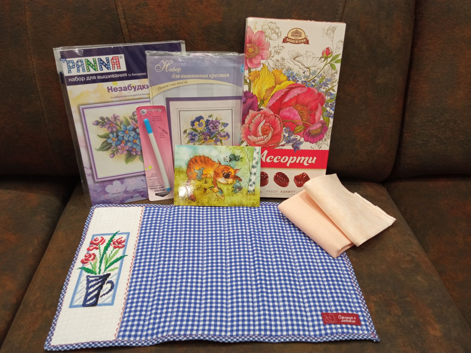 28 мая 2021 Добрый вечер, дорогие дрУги! Давно меня не было, поглотила меня работа и рутина, вышивала урывками, но всё-таки вышивала. Для начала позеленим гаечку, розы от Панны готовы. Красивы бесспорно, но процесс не из самых приятных, про нитки и схему -простыню с похожими значками я писала. Оформлять планирую в багет без паспарту, скорее всего белый. Фото для гайки Мой тайный процесс "Белая чашка" по схеме Ксении Адоньевой, маленький, да замороченный, и бленды, и четверть крестики. Вышивала на Мурано, DMC по ключу. Оформила в обложку на книгу для рецептов и уехал мой сюрприз к Тане Рейлэнэ, надеюсь, будет использоваться по назначению. Фото для гаечки и финиш. И мой новый процесс "Цветочная беседка" от Риолисса. И пусть вышила одну ниточку, но вышила же! А ещё я получила шикарный сюрприз от Ирины irinaol , чудесный ланчмат и куча подарков! Закрома пополнились ещё на два замечательных цветочных наборчика. На этом всё! Всем добра и вышивальных выходных! ЛАДОМИРА, lenning, kreolka и 12 других сказали спасибо Поделиться сообщением Ссылка на сообщение