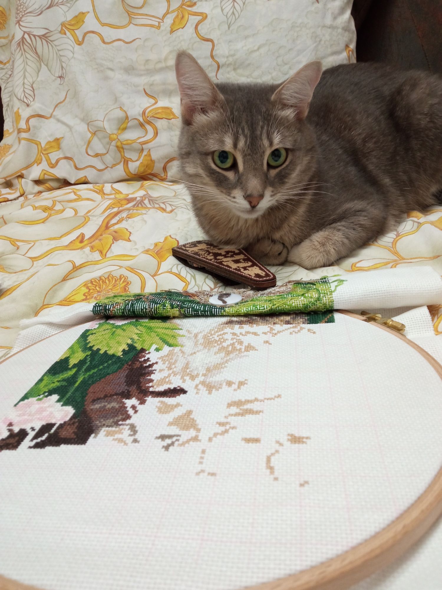 15 июня 2022 Доброго июньского ! Пришла пора зеленить гайку. Ура! Мой наблюдать готов, красив и невероятно позитивен! Готов он был давно, но я, ворона, не тем цветом отшила бэк, на тон темнее, именно тот цвет, которого больше всего. Порола, перешивала... ругала себя словами всякими нехорошими. Но теперь всё, как надо. Вышивали вместе, Феникс помогал, как мог. ) Взглядом с укоризной, например.) И продолжение иконы, она невероятно красивая, маленькие золотые вкрапления в фоне выглядят очень здорово. Она простая по цвету, но благородная и нежная. Всем добра и котиков! ЛАДОМИРА, Елизарочка, Хозяйка смешных зверей и 14 других сказали спасибо Поделиться сообщением Ссылка на сообщение