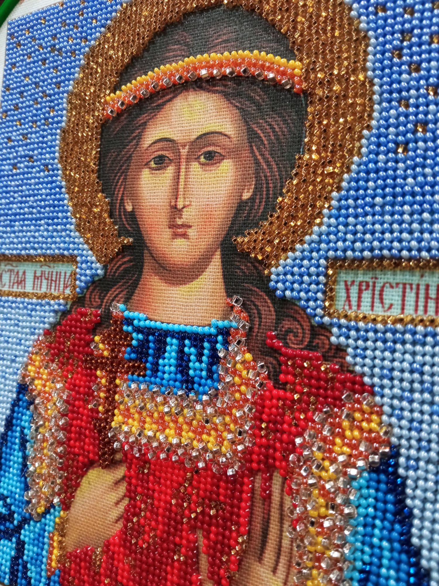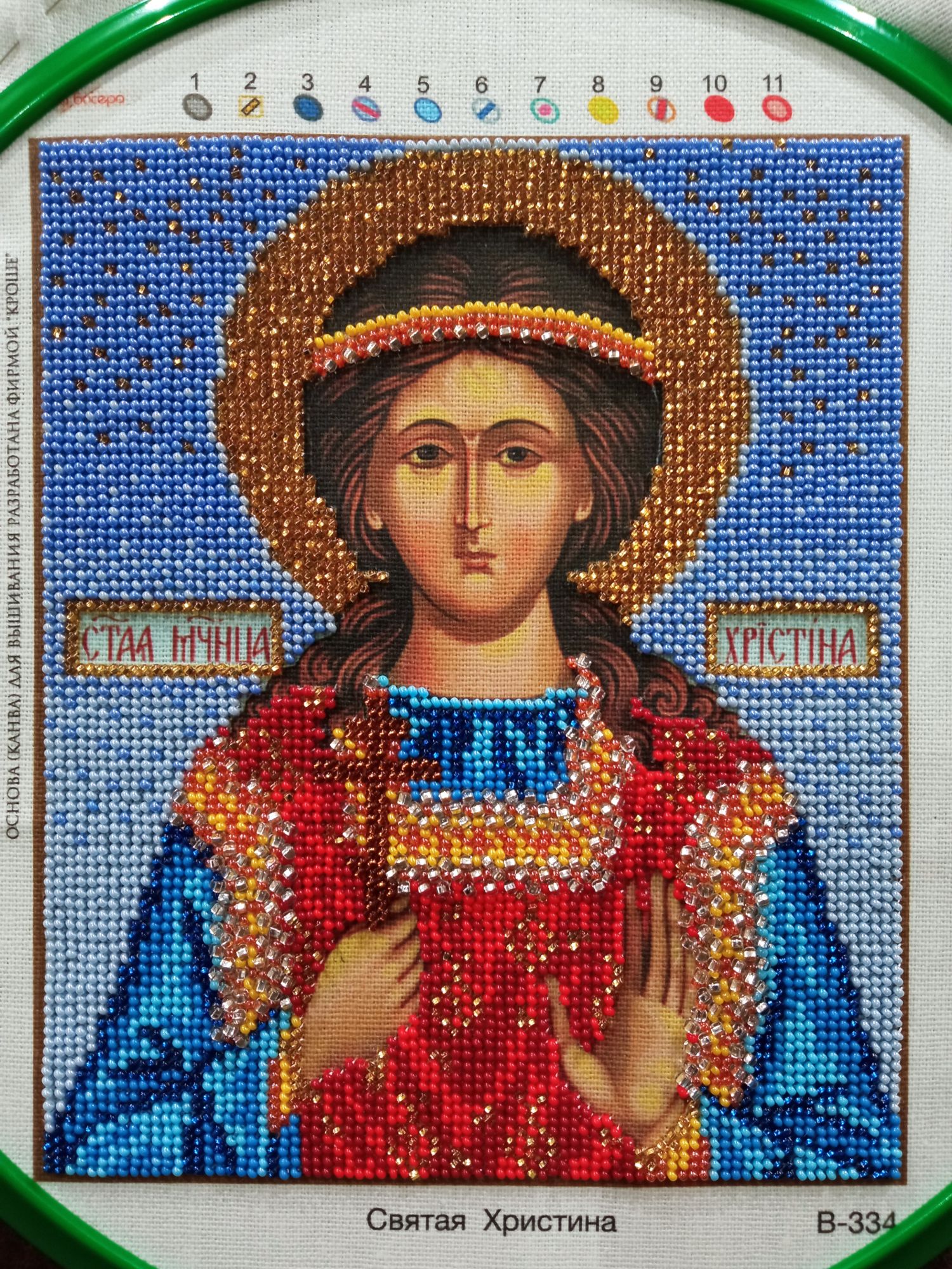 5 декабря 2023 Доброго! Я закончила икону Св. мч. Христины. Она меня позвала и я дошила на одном дыхании. Видно, пришло её время. О результате: любуюсь- не налюбуюсь, бисер играет и переливается, яркая, но очень нежная. Единственное, что я изменила, бисер, которым вышивается крест, взяла потемнее, светлый сливался с жёлтым. О процессе. Он был долгим не просто так. Шилось тяжело. Во-первых, печать на ткани так рябит и сливается, что через короткое время я просто не видела куда и что. Во-вторых, бисер разнокалиберный, времени на сортировку ювелирного бисера ушло прилично, ну, не могу я видеть, когда разница в два раза и посадить их рядом. В-третьих, есть и обычный бисер, который дал объем, игру, переливы, но очень плохо и неаккуратно становился на своё место. Я пожалела, что не заменила его на другой. Но в итоге всё равно хорошо и Слава Богу за всё. VID_20231206_012807.mp4 19199707770, Юнона1960, kreolka и 8 других сказали спасибо Поделиться сообщением Ссылка на сообщение