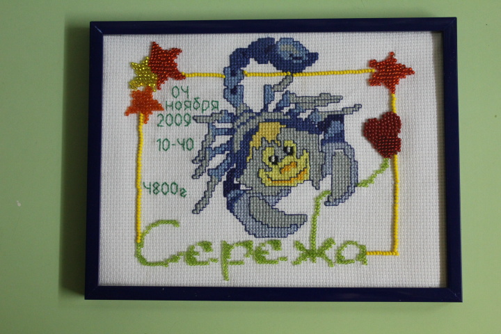 21 ноября 2011 В последнее время почти не вышиваю, что-то настроения совсем нет, работы полно и икона почти не движется. Все кажется, еще чуть-чуть и свободного времени станет больше, а его все меньше и меньше.Да, еще человек в отделе уволился, нового пока нет. Решила отвлечься от бисера, и вышить метрику сыночку моей сестры. Даже на такую мелочь ушло почти 2 недели. Не могу сказать, что очень довольна результатом, но в общем вроде неплохо. Поделиться сообщением Ссылка на сообщение
