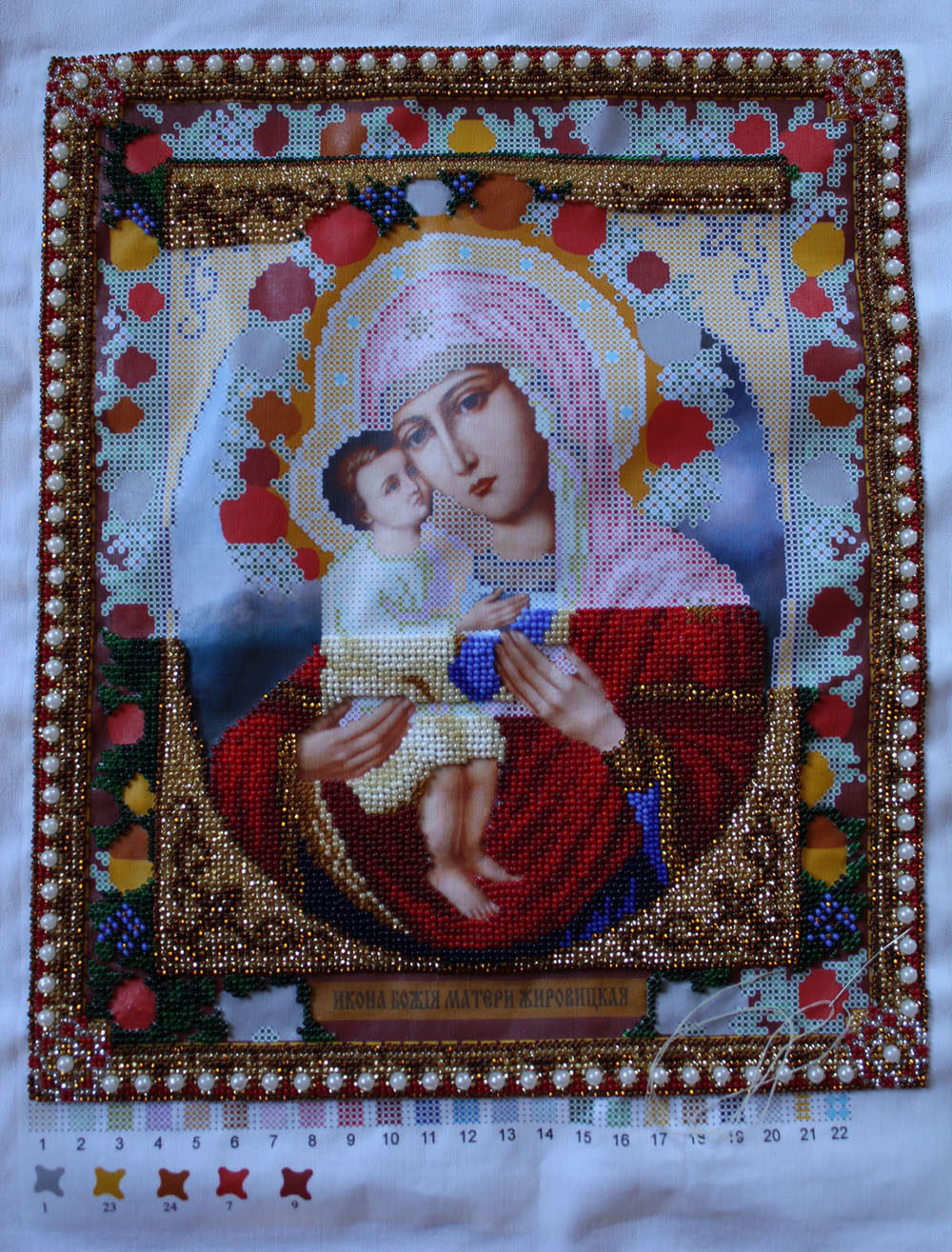 8 января 2013 Самой масштабной работой 2012 года была Икона Божьей Матери Жировицкая от Чарiвна Мить. Впечатления от работы самые положительные, ткань с рисунком очень приятная на ощупь, бисер весь ровненький. Впервые попробовала вышивать объемные бисерные цветы и лепестки. Не смотря на довольно большой объем работы вышила ее за 2 месяца чеба, Juliet и Татуся сказали спасибо Поделиться сообщением Ссылка на сообщение