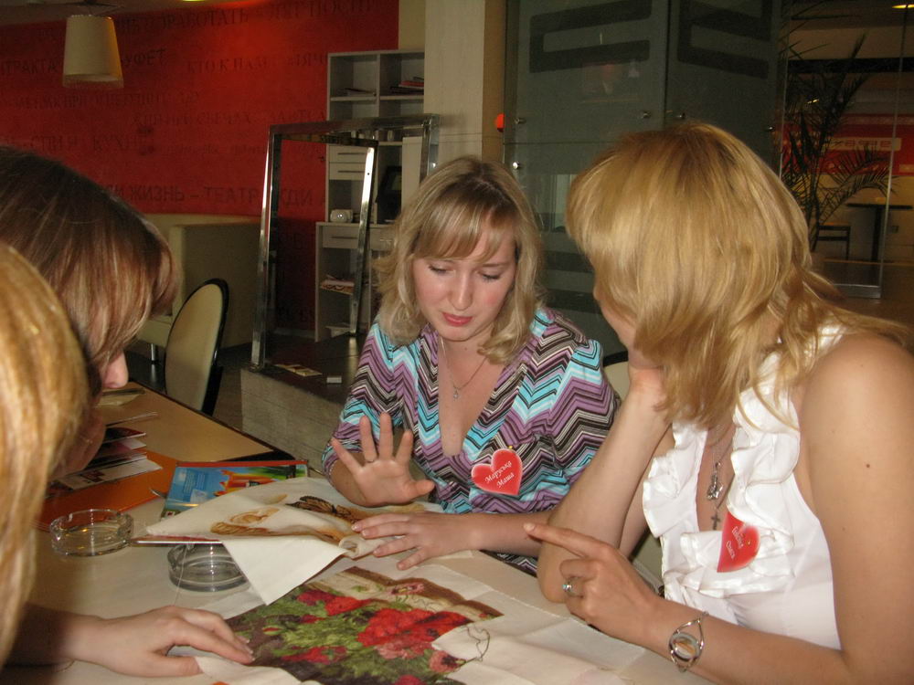 24 июня 2011 я так спешила выложить фотографии, что не успевала даже смайлики ставить Олечки, так здОрово, что вы встретились! очень приятно увидеть вас вместе Наша встреча была головокружительной! стол был завален вышивками!!! столько работ на одном квадратном метре - рекорды Гинесса нервно курят в сторонке! шикарная! выставка!!!! девочки все просто мега-замечательные! мы все как будто сто лет знакомы часа два только вышивки рассматривали! море позитива от общения! всех лю!!! надо обязательно повторить! чеба, Мария1981 и marina_ssp сказали спасибо Поделиться сообщением Ссылка на сообщение