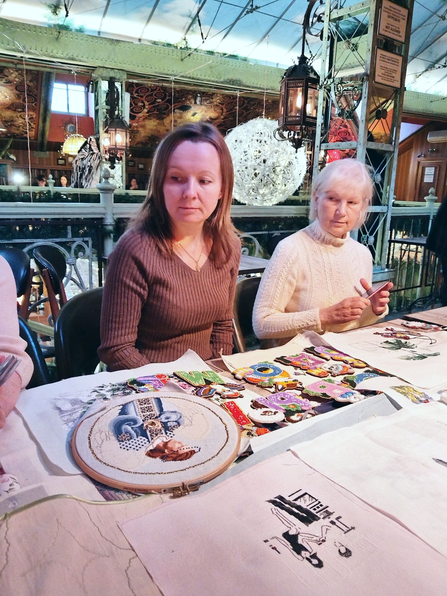 2 декабря 2023 10 минут назад, АлёNка сказал(а): Ну очень бы хотелось! Как всё было в заведении, нормальное место? Да, все было хорошо. Мы заняли несколько сдвинутых столиков, на которых разложили вышивки, а на соседних столиках ели-пили, чтобы ненароком не испачкать вышивку. Когда пришли, народу было мало, когда уходили уже стало побольше, это чувствовалось. Polly, olnikva, Melissa299 и 4 других сказали спасибо Поделиться сообщением Ссылка на сообщение
