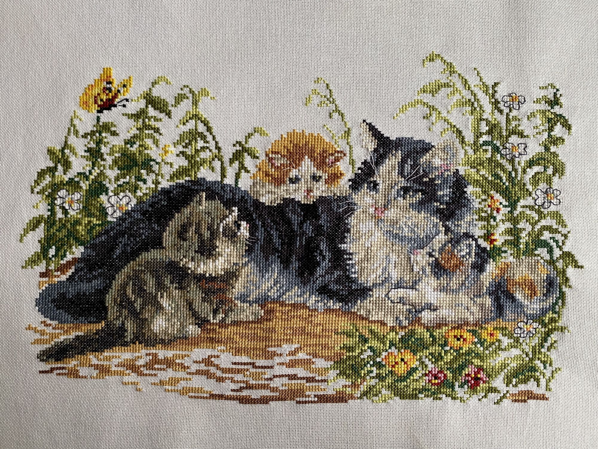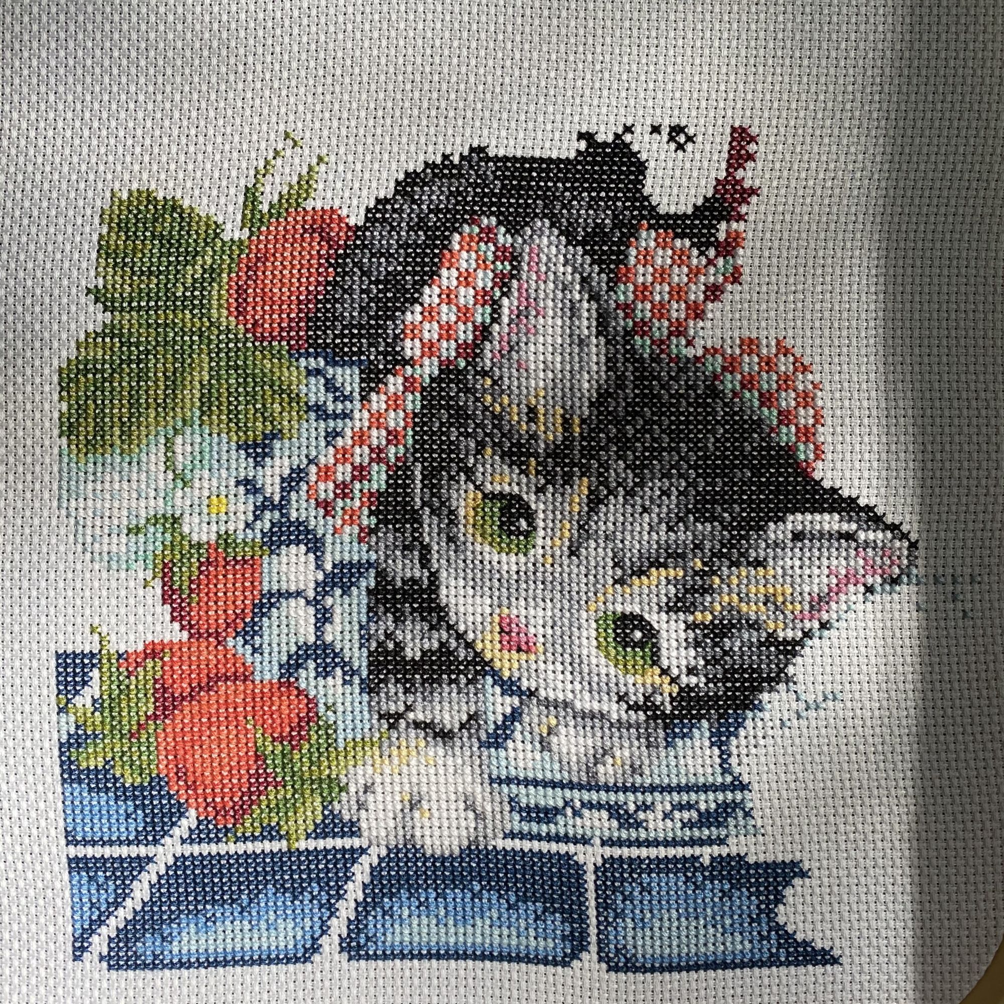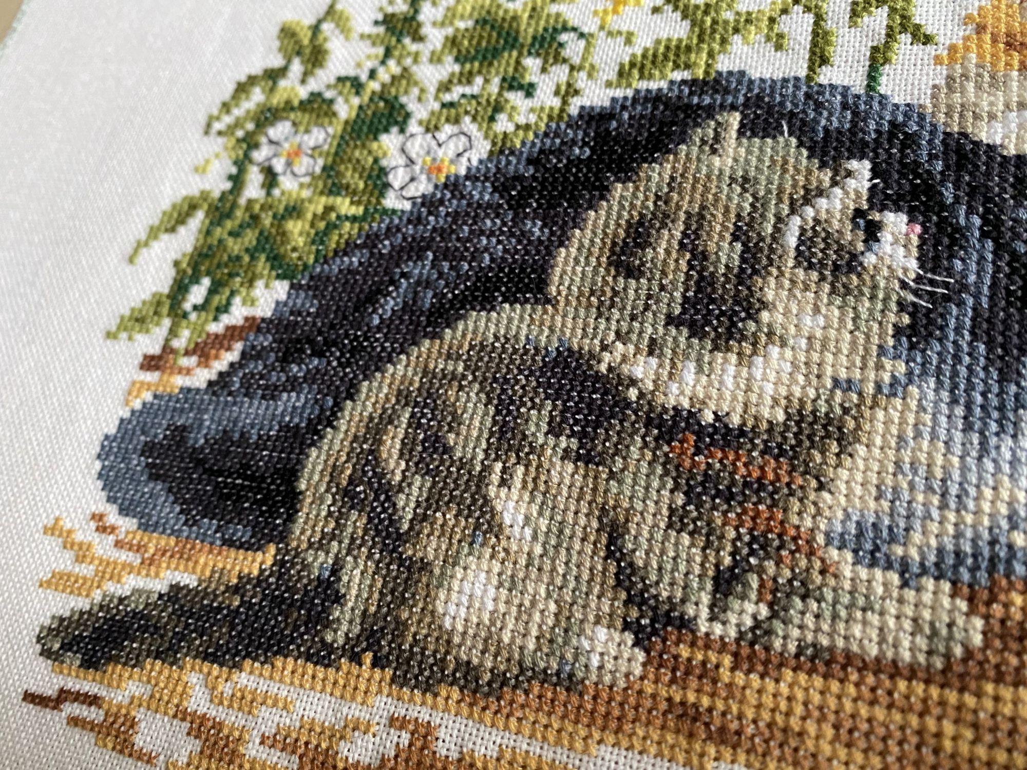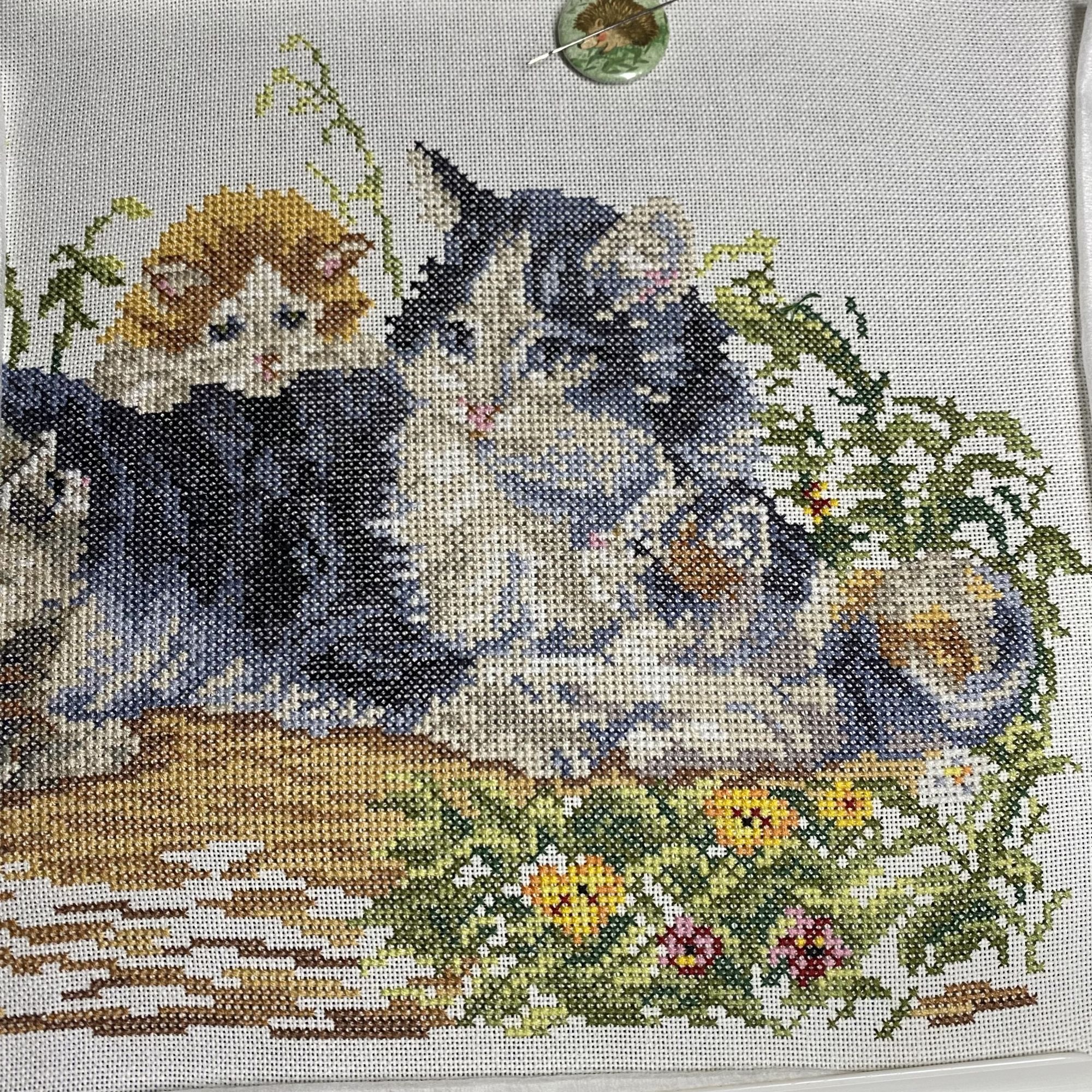 5 августа 2021 Привет всем! Очередная порция котят от меня) Этим летом из дальнего угла я достала Идиллию от Чудесной иглы. Цель - завершить как можно скорее, но как-то пока я не очень удовлетворена своими продвижениями. Тем не менее, уже полностью вышита Мама-кошка и мордочка трехцветной малышки. Немного сейчас переключилась на фон, чтобы не утонуть в фоновой зелени под конец работы. Так же я славно потрудилась над котятами в землянике от Design Works. Закончила вышивать кусок, который помещался в самые большие квадратные нурге и отбэкала его. Ступенчатый бэк делать мне даже понравилось, хотя изначально я была просто в ужасе от количества стежков, которые мне предстоит сделать. И конечно же я трудилась (и продолжаю трудиться) над милым котиком, наблюдающим за птицами от Dimensions “Charming birdwatcher”. Сейчас я уже перешла на вышивку правой нижней части работы, скоро покажу и ее, а пока полюбуйтесь на почти полностью вышитого котика) lefkorosida, Fascinata, mischmisch и 20 других сказали спасибо Поделиться сообщением Ссылка на сообщение