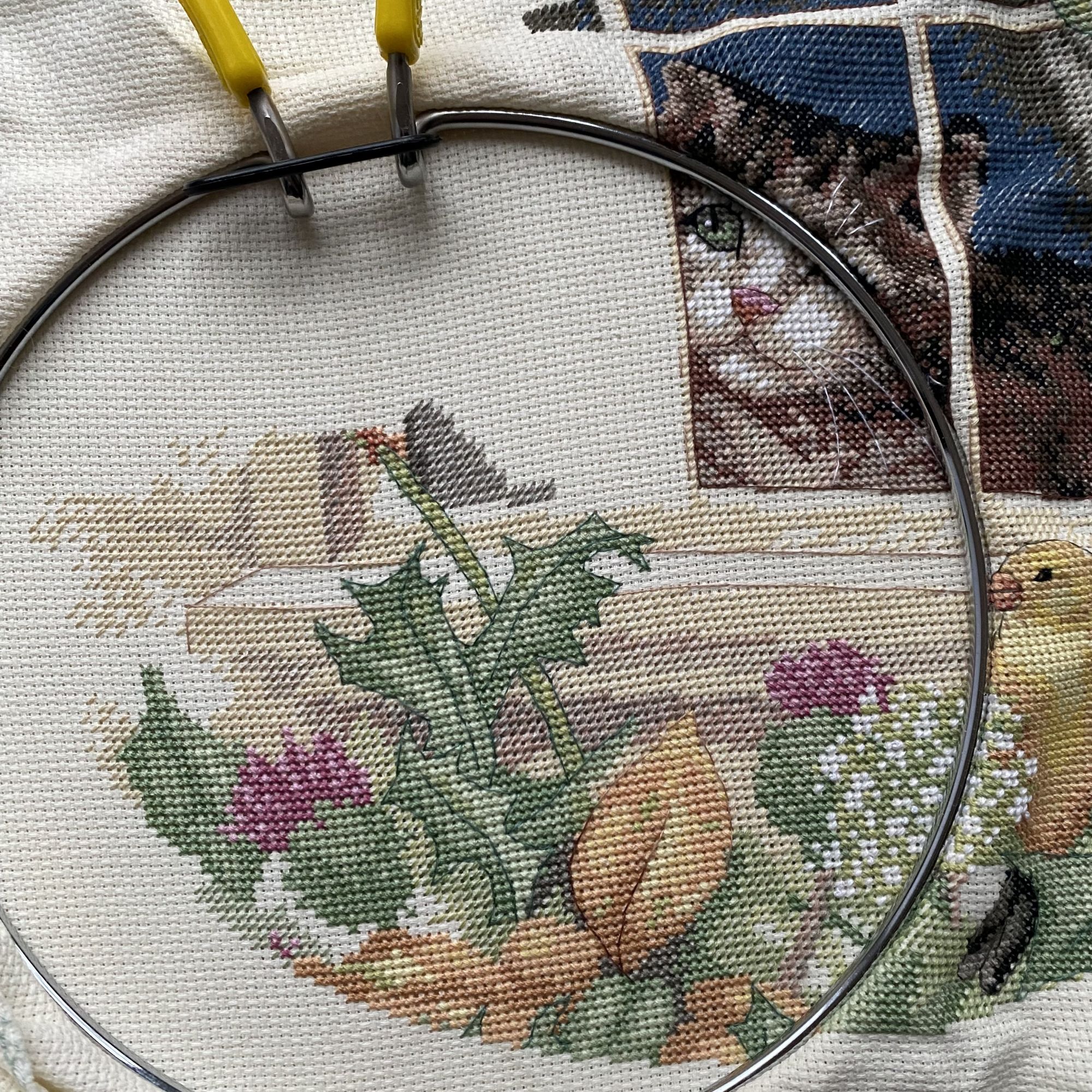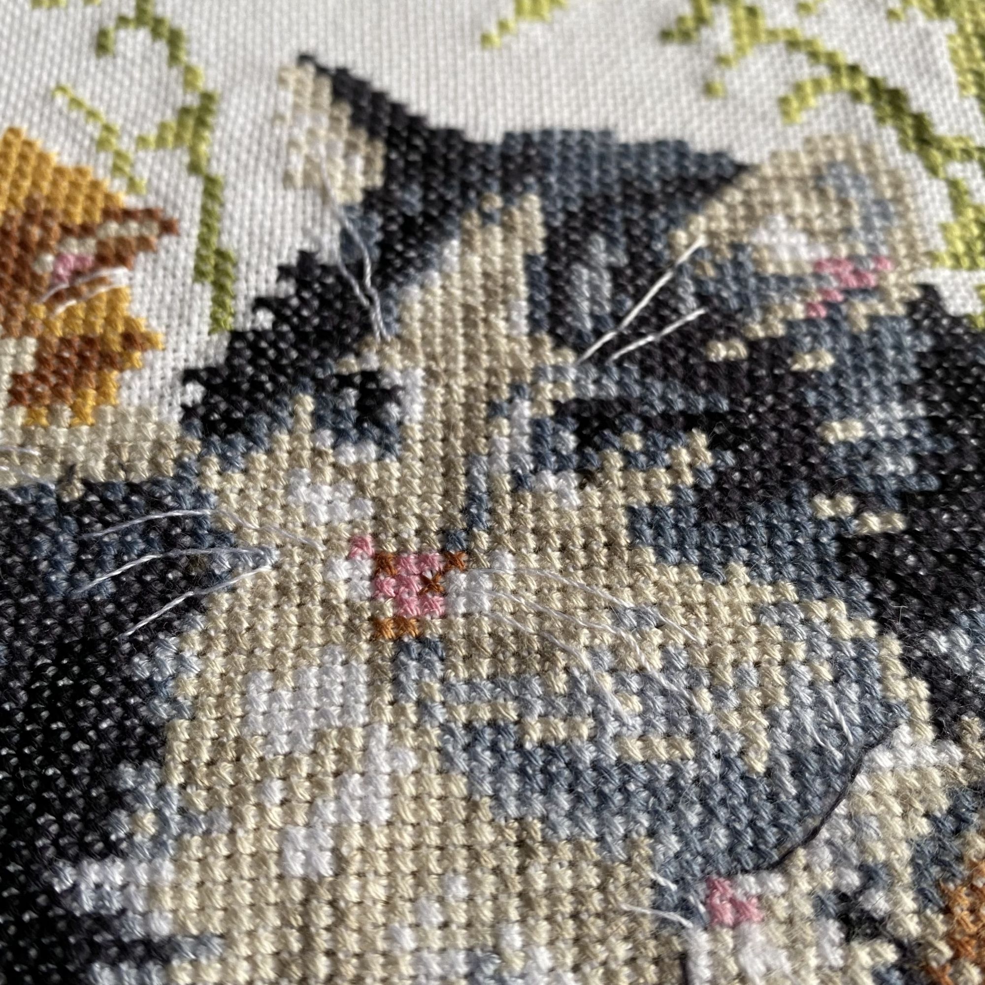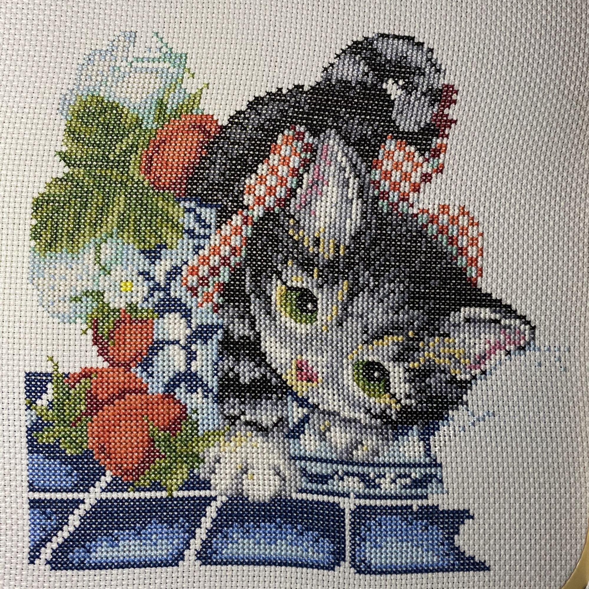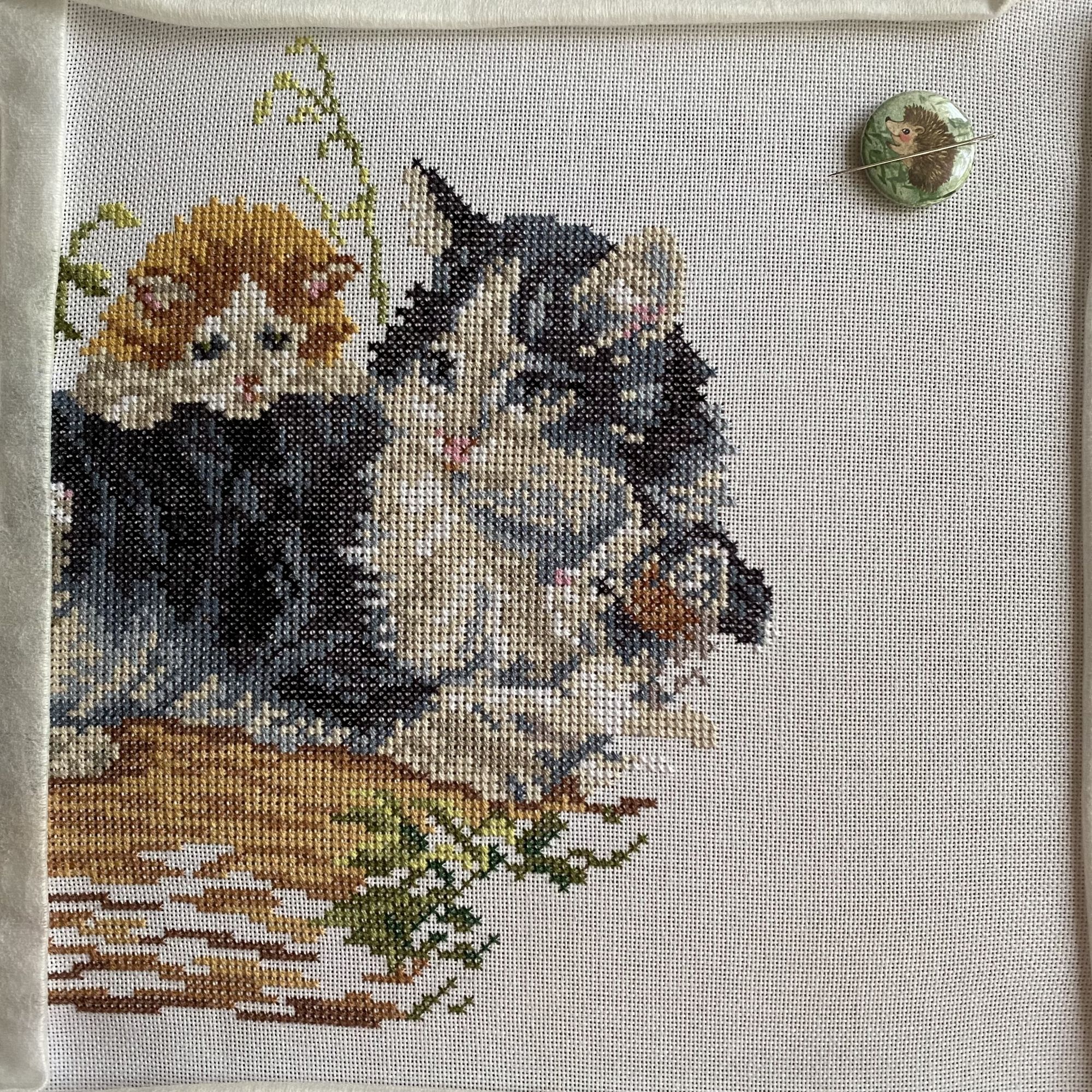 5 августа 2021 Привет всем! Очередная порция котят от меня) Этим летом из дальнего угла я достала Идиллию от Чудесной иглы. Цель - завершить как можно скорее, но как-то пока я не очень удовлетворена своими продвижениями. Тем не менее, уже полностью вышита Мама-кошка и мордочка трехцветной малышки. Немного сейчас переключилась на фон, чтобы не утонуть в фоновой зелени под конец работы. Так же я славно потрудилась над котятами в землянике от Design Works. Закончила вышивать кусок, который помещался в самые большие квадратные нурге и отбэкала его. Ступенчатый бэк делать мне даже понравилось, хотя изначально я была просто в ужасе от количества стежков, которые мне предстоит сделать. И конечно же я трудилась (и продолжаю трудиться) над милым котиком, наблюдающим за птицами от Dimensions “Charming birdwatcher”. Сейчас я уже перешла на вышивку правой нижней части работы, скоро покажу и ее, а пока полюбуйтесь на почти полностью вышитого котика) lefkorosida, Fascinata, mischmisch и 20 других сказали спасибо Поделиться сообщением Ссылка на сообщение