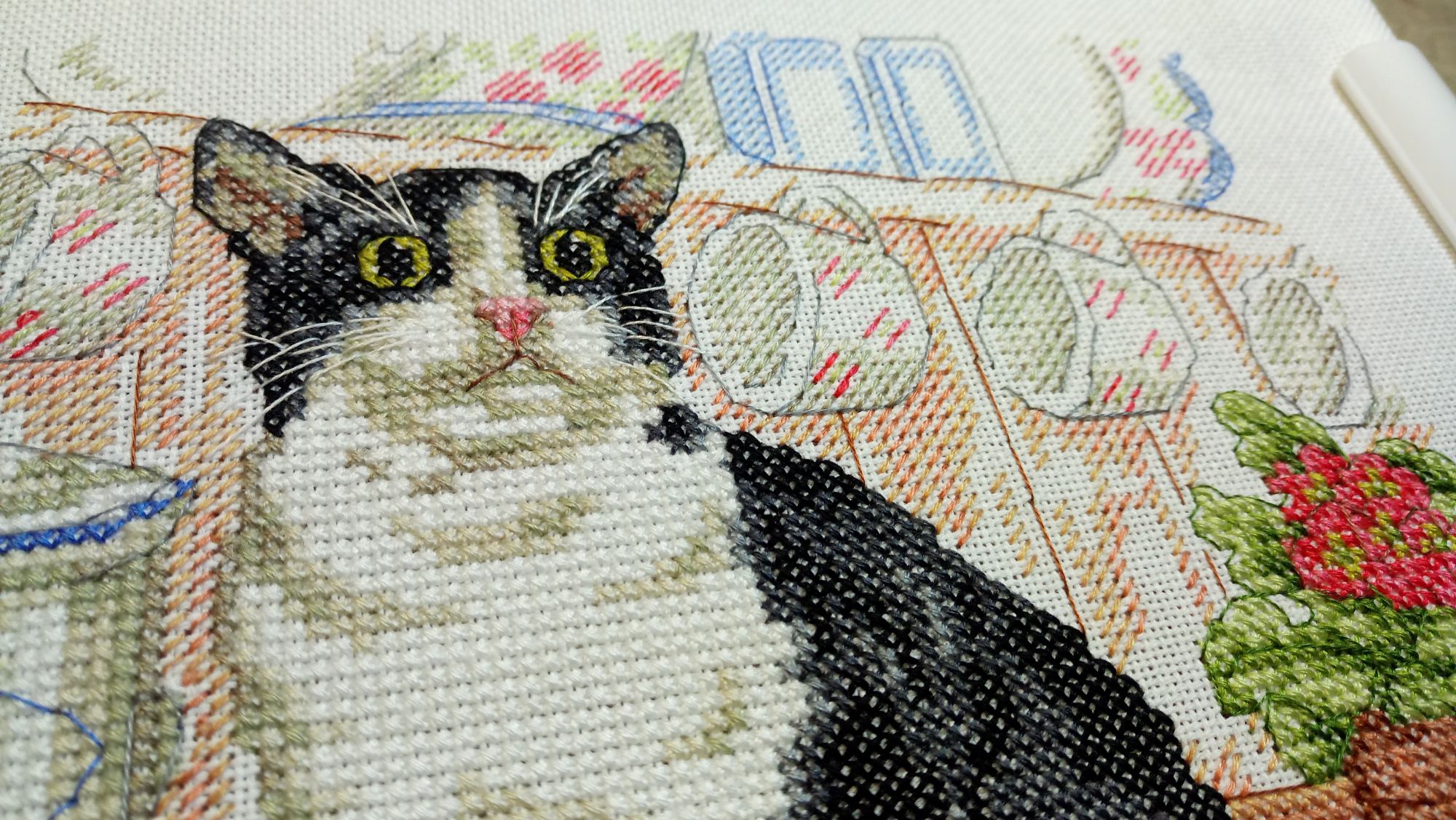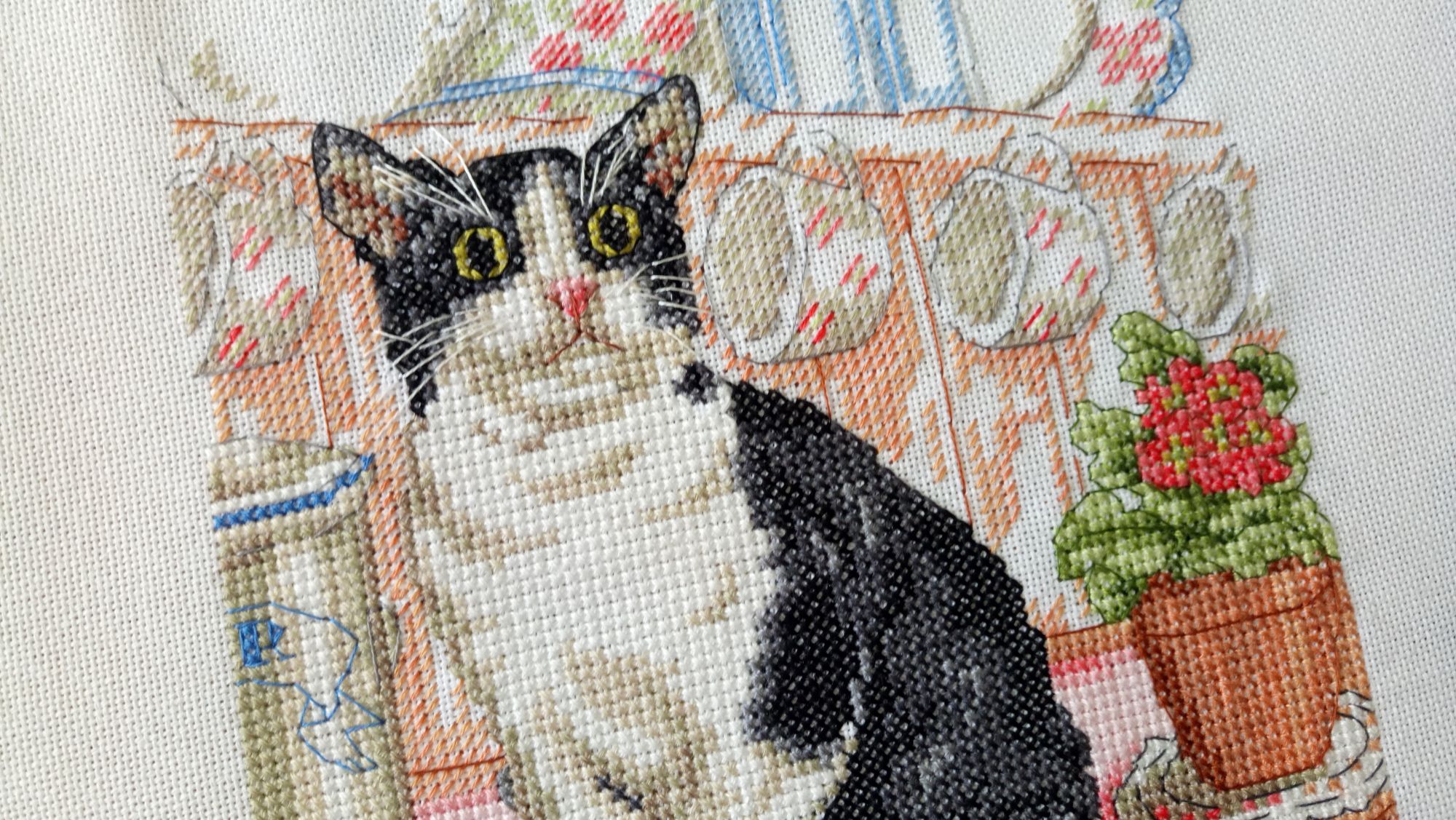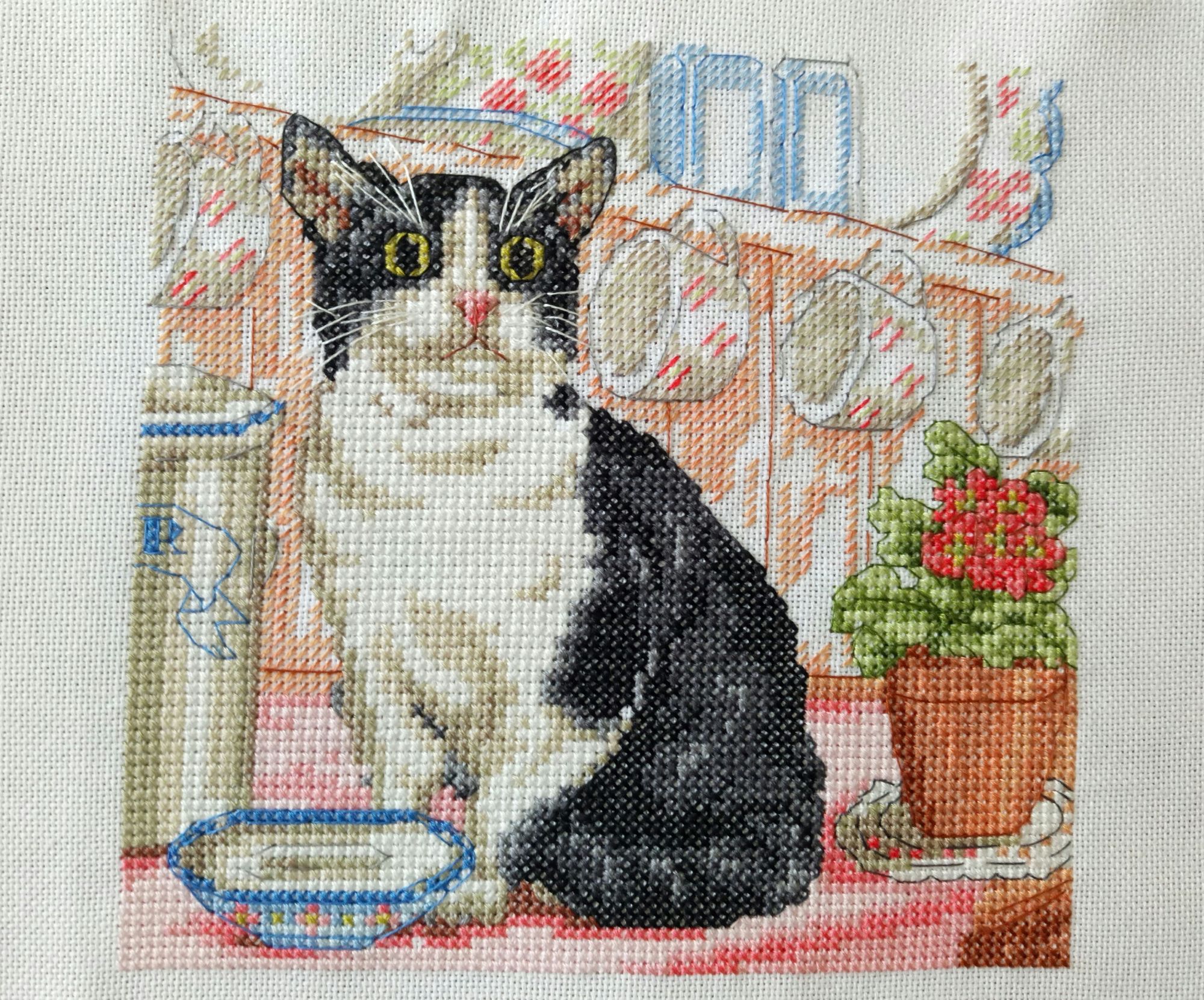 14 марта 2017 Подниму нашу тему с котами))) очень нравится процесс. Схема мелковата, похожа на димовскую, но только бэк ещё отдельно, поэтому бэк я тоже буду делать потом. Мне нравится цветовая гамма, несмотря на то, что цветов везде много, в листочке зелени три цвета, в чайнике три или даже четыре оттенка. Забавный котик вырисовывается. Sneganna, lesik, snowflake и 17 других сказали спасибо Поделиться сообщением Ссылка на сообщение
