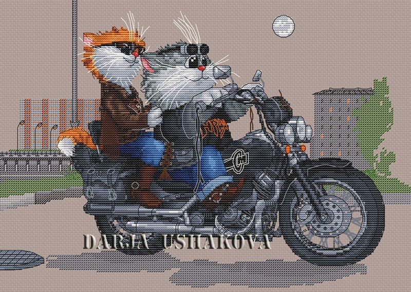 25 апреля 2017 Девочки, всем привет!!! Весна в этом году где-то заблудилась, но мои домашние пушистики будут готовиться к байкерскому сезону)) Художник Алексей Долотов: Байкеры Дизайнер Дарья Ушакова: Набор. 187х131 крестик. 55 цветов, в т.ч. 17 блендов. Мулине DMC. Крест, полукрест, бэкстич, выкладная нить, французский узелок. Схема чёрно-белая: 8 листов для вышивки основы рисунка и 8 листов с нанесёнными на схему прочих швов. 1 инструкция к схеме и 1 инструкция по уходу за канвой. Канва равномерного переплетения, художественное окрашивание канвы SofiNa (дизайнер Серикова Наталья) sakineva, Аленка-2, kreolka и 9 других сказали спасибо Поделиться сообщением Ссылка на сообщение
