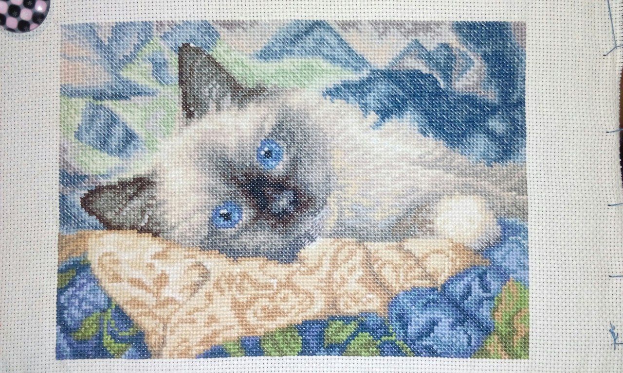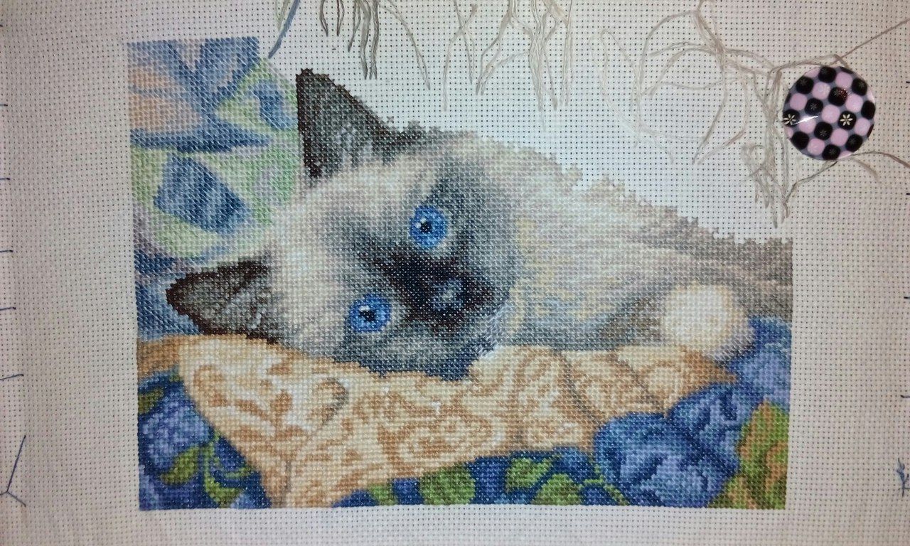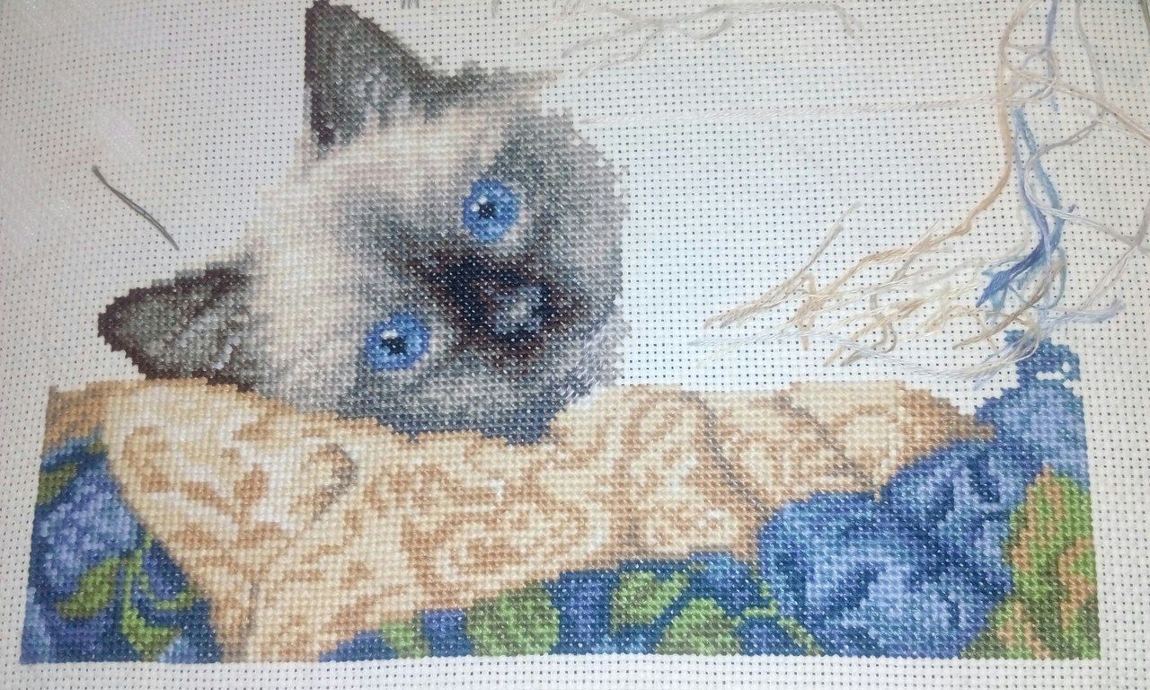 2 мая 2017 Что-то долго вышиваю я своих котят И не потому что на равномерке первый раз или мне (моей голове) неудобно шить из центра и без разметки. Вроде бы и работа маленькая, и схема читаемая, но.. Вышить за сутки (!!!) полукрестиком домик с деревцем и крестиками луну и начало байка.. - за это время я бы уже лист гобелена одолела........... То, что кажется так легко, на самом деле вышивается ВСЁ 3-4-5-6 крестиками одного цвета, меняется на близкий, почти однотонный и на их бленды. Даже начало протектора от переднего колеса уже вышилось 4-мя цветами)). Приятно было вышивать только фары, это самые большие части, которые вышивались одним! оранжевым)) А, да, забыла, глаза и рот/губы кота вышиваются по Heritag-у)) - по 4 крестика в одной "клеточке", и тоже несколькими цветами. В общем, вся изнанка в закрепках. Но самым неожиданным было то, что уже закончился 1 цвет. Удивительно, его так много в схеме как в моноцвете, так и в блендах с разными №№, а в наборе (он под № 36) - -кот наплакал, всего 1 пасма. Всё бы ничего, если бы я жила в городе и это случилось днём: докупила бы дмс или аналог. Но в час ночи пришлось вскрыть и "распотрошить" кошку от Kastom Krafts, благо там этого дмс 3799 навешано "густо" тремя мотками. Одно радует: котаны крутые прорисовываются АлёNка, Камма80, Дичок и 10 других сказали спасибо Поделиться сообщением Ссылка на сообщение