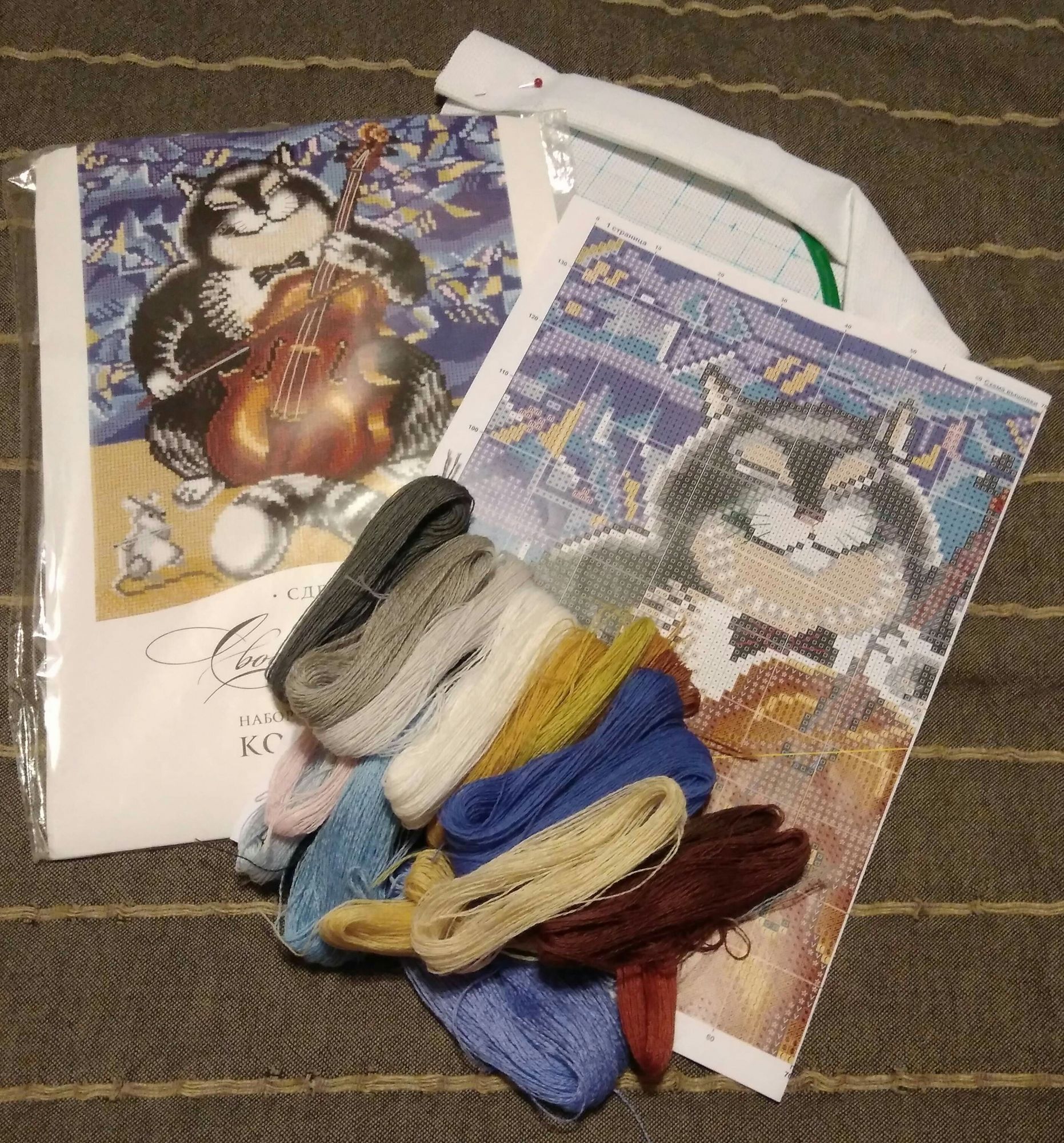 29 января 2018 Девочки, привет! Я к вам В рамках подарочно-поздравительной программы 2018г. начала вышивать набор от Сделай своими руками К-20 «Контрабарс». Он конечно, может и "барс", но уж больно морда у него сыто-довольно-кошачья . Планируется в качестве подарка на юбилей для коллеги из Ярославля. Обычно для подарка выбираю сюжет, который характеризует человека или ассоциируется с ним. Вот и в данном случае картинка выбралась именно по этому принципу. С девочкой вживую не встречались, в основном общаемся по телефону. И ее тембр голоса, и интонации сразу наложились на эту картинку. Голос низкий, глубокий и интонации такие всегда бу-бу-бу, бу-бу-бу. Одним словом, «Контрабарс» Про набор много писать не буду, все как обычно у ССР: канва аида 14, ниточки – шерсть, игла, цветная схема. Каждый цвет отмечен не только цветом (извините за тавтологию), но и символом. Мне так удобно, потому что я больше привыкла работать с черно-белыми схемами. В данном случае я легко отксерокопировала схему в черно-белом формате и работаю с символьной схемой, не обращая внимания на цветовые обозначения. Теперь о впечатлениях. Помните древний анекдот? Муж говорит жене: «Дорогая, ты у меня лучше всех! И сегодня я в очередной раз в этом убедился!» Так вот это про меня. Я в очередной раз убедилась, что вышивать шерстью я не люблю. Ну как не люблю… Меня это не раздражает (иначе я вообще не стала бы этого делать), но и не доставляет такого удовольствия, как вышивка хлопковым мулине. Я это знаю, но попадаюсь на эту удочку снова и снова. Думаю, что попадусь еще не раз. Ну, и сам набор и мои первые продвижения. В первый раз за свою вышивальную практику столкнулась с нехваткой ниток. Я нитки трачу очень экономно. Зачастую оставшийся хвостик заправляю вспомогательной нитью. Бывало так, что вложенные в набор нитки расходовались до последнего хвостика. Но так, чтобы не хватало - не было еще ни разу. Но, видимо, когда-то это должно было случиться Светло-горчичные нитки уже закончились. А они еще нужны бы... В запасах такого оттенка не нашла. Искать докупать не буду. Ситуацию спасает то, что это фон, типа пол. Основной тон темно-горчичный и кое-где более светлые вкрапления. Пока подумаю, что сделать. Либо для вкраплений добавлю другой оттенок желтого, либо буду вышивать одним тоном. Общего вида это не изменит. kreolka, ЮшИрина, kas_julia и 12 других сказали спасибо Поделиться сообщением Ссылка на сообщение