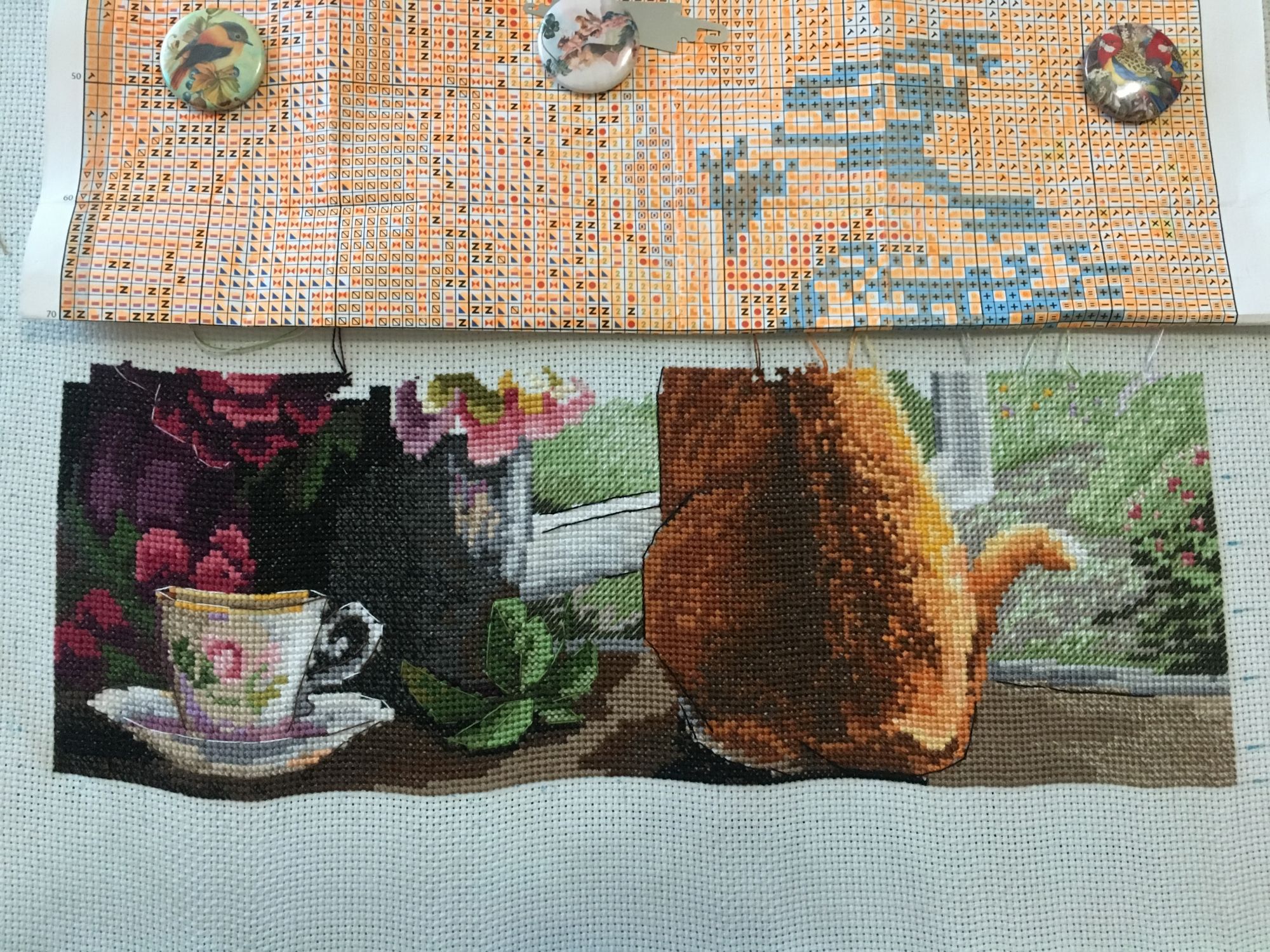 10 августа 2018 16 часов назад, LadyL сказал: первый Лист схемы вышит однако, я поняла, что меня так долго смущает в этой картинке. Слишком крупные птицы. Наталья, птички очень милые, толстенькие))) Но больший восторг вызывают полосатые ушки!!! 13 часа назад, Tatiana Ch. сказал: Итак. Наконец-то показываю своё очередное продвижение по спящему котику: Летний невышивун понемногу отпускает. Вышито немного больше половины. Перехожу в нижний правый угол. Татьяна, работа яркая, летняя. Представляю, с каким удовольствием вы ее вышиваете!!! Котик очаровательный! Пушистая, Tatiana Ch., LadyL и 1 другой сказали спасибо Поделиться сообщением Ссылка на сообщение