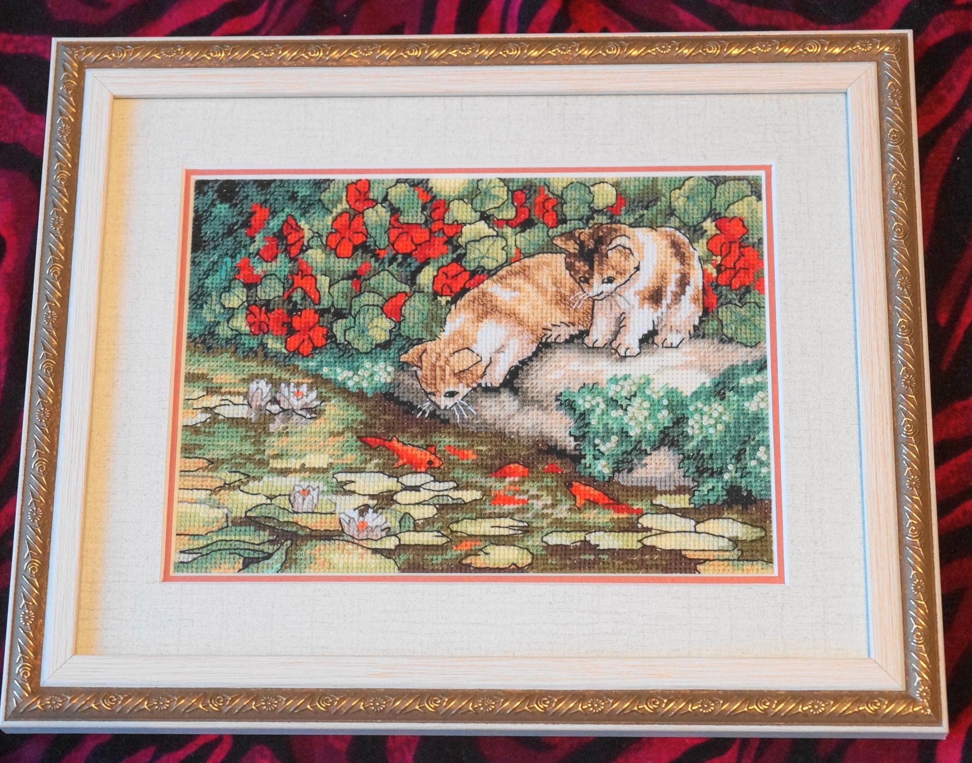 10 августа 2018 А у меня дома - ремонт, вышивать не получается. Зато сходила в багетную мастерскую. Правда моей любимой приемщицы не было, заказы принимал сам мастер, и мне кажется, мы с ним выбрали слишком яркие варианты. Вот принесла на ваш суд. 1. Во время ремонта у меня уронили Кошку с котенком (РС студия). Стекло осталось целым, зато разбился багет. Пришлось менять. Это то, что было И новый В принципе, мне нравятся оба варианта. Просто к новому еще не привыкла. 2. "Kitten Reflections" 65071 Dimensions - набор, 128*92, 27 цветов+ 3 бленда. 01.01.2018 - 04.02.2018. Вышилось легко и с удовольствием от начала до конца. К концу работы усталости, как это часто бывает, не было совсем. Сначала казалось, что черный бэк выглядит грубовато, но когда дошила, стало казаться, что нормально. То ли привыкла, то ли при полной зашивке резкость снивелировалась. Вот насчет оформления как-то сомневаюсь. Переделывать конечно не буду, но получилось, мне кажется, слишком светлое. 3. Котенок - 54*56, 16 цветов, в т.ч. 2 бленда, 14 канва. Схема в графике - чей-то перенабор из интернета, перенабрала сама, чтобы распечатать в удобном мне формате. По-моему, это Dimensions, но точно не уверена. Первый опыт оформления в шкатулку. Просто не знала, куда такую небольшую работу можно оформить. Размер шкатулки получился 20*19 см, высота 5,5 см. Как получилось, мне нравится. Люба К, maestro, Не факт и 19 других сказали спасибо Поделиться сообщением Ссылка на сообщение