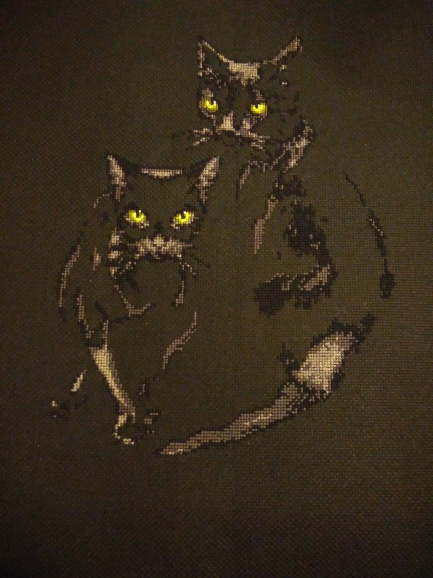 4 ноября 2018 Ура! Я всё! Теперь в багетку! По впечатлениям: "Золотое руно" опять радует канва, ниточки - все приятно в использовании. Единственная сложность, как и ожидалось, чёрное на чёрном. Но тут уж ничего не поделаешь. Вышилось быстро, главное, успела в установленный срок. Впервые работала с флуоресцентными нитками. Глаза и впрямь выглядят очень выразительно . solnishko-ym, hamari, kreolka и 15 других сказали спасибо Поделиться сообщением Ссылка на сообщение