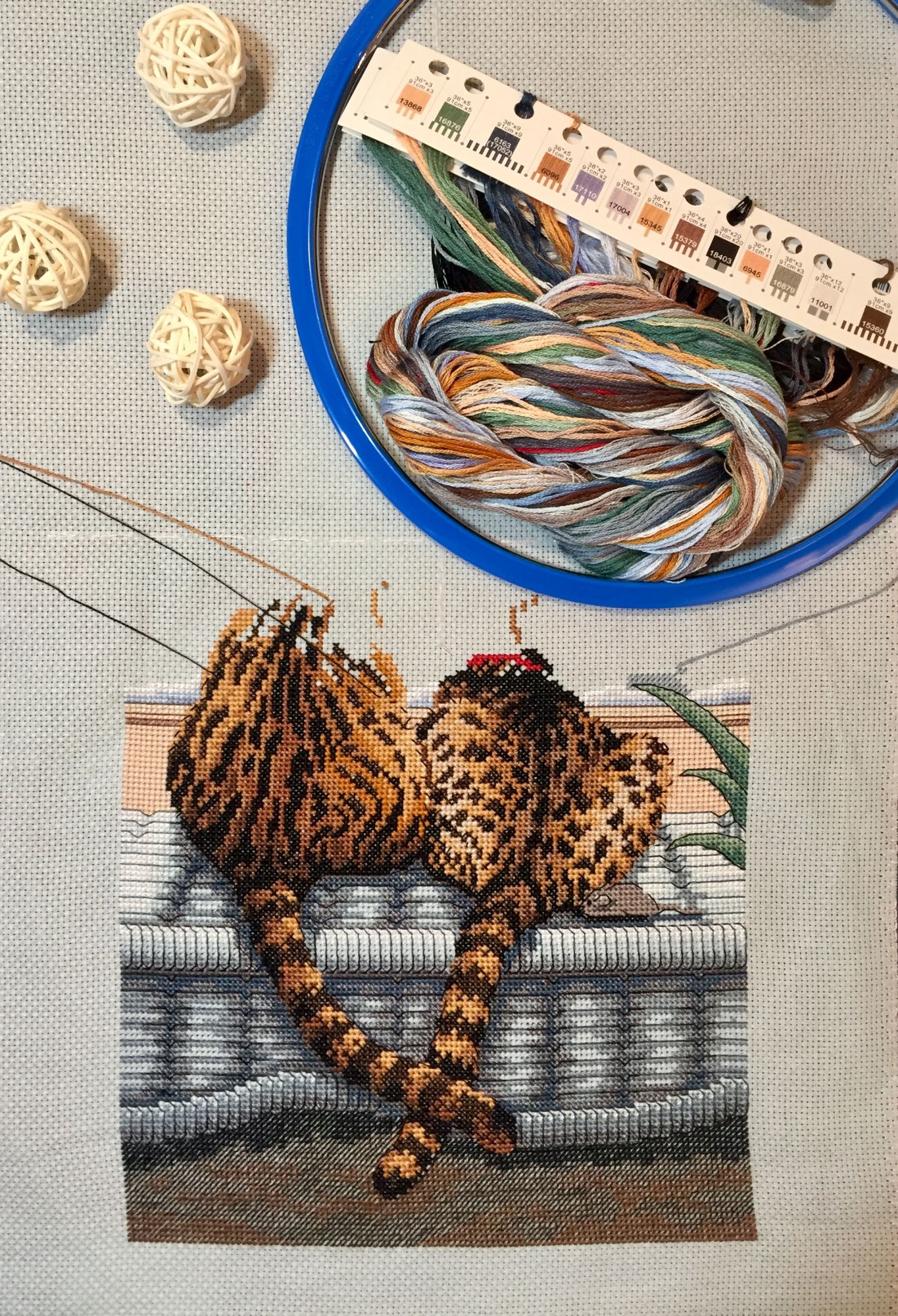 23 декабря 2018 А я вернулась снова в кошачью тему Видимо все-таки кошек люблю больше чем собак. Увидела и скачала эту схему еще год назад. Даже канву с люрексом для нее купила. Правда, хотела 16-го каунта, но не нашла. Купила 14-го. Но год назад так и не получилось ее вышить. И сейчас наконец-то решила начать. Итак. Похождения кота Василия (Золотые ручки) - 140*242, 34 цвета + 10 блендов, Аида 14 каунта с люрексом. Схема из интернета, нитки подбором из домашних запасов. Первые впечатления, что количество цветов явно завышено. Некоторые оттенки совершенно сливаются в отшиве, хотя в пасме отличаются. Вот, что отшилось за неделю. А это, что будет в результате. Сибирская Кошка, Avril, Alena Lanscowa и 17 других сказали спасибо Поделиться сообщением Ссылка на сообщение