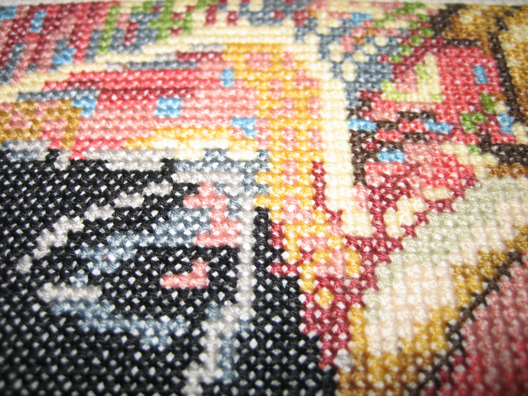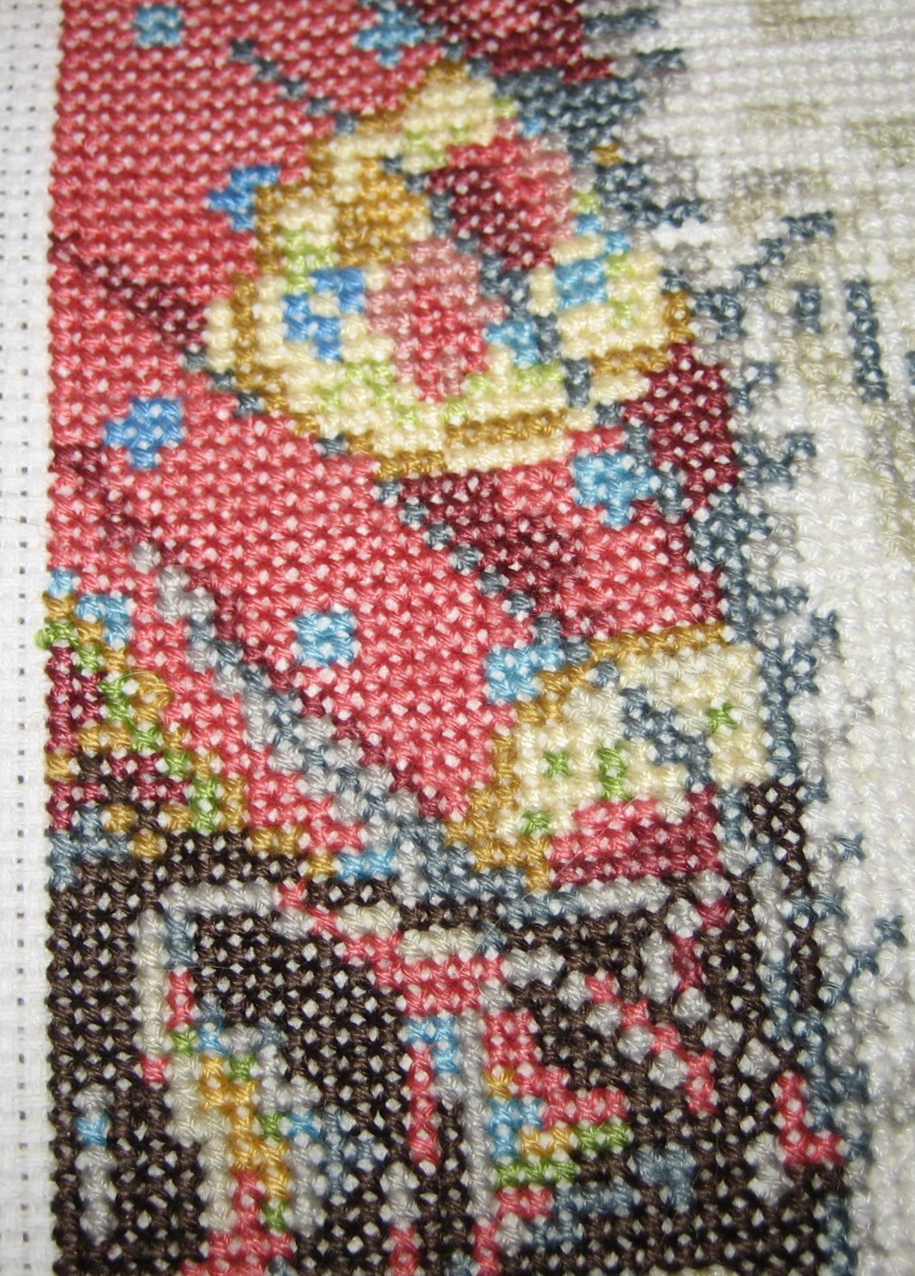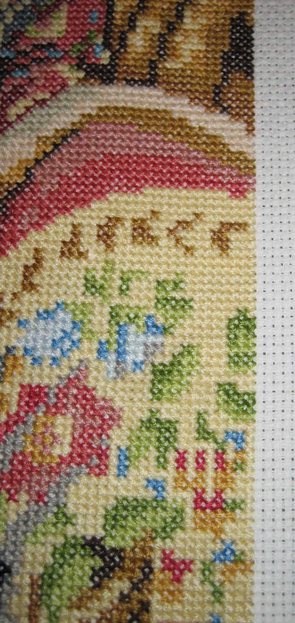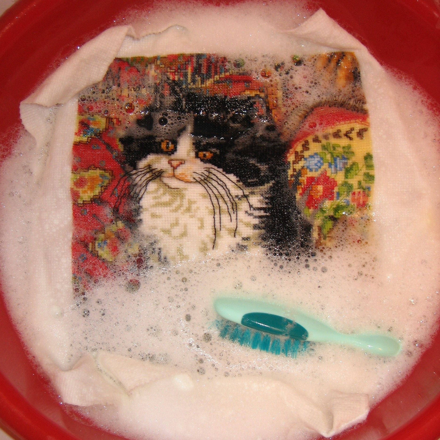 13 января 2019 Девочки, всем привет от меня и маленького котёнка Скрытый текст Была у нас когда-то любимица Василиса, появилась в нашей семье в 1994 году и прожила 15 лет. Но сначала она 2,5 года была Васькой, а потом случилось чудесное "пополнение в семействе"))) Жалко, что тогда мы очень мало фотографировали, но мы её и так помним и до сих пор вспоминаем.. Candamar 51149. Cat and Floral Wallpaper. Счётный крест. Дизайнер Vanessa Adams по мотивам работы художницы Diane Brakefield "Black&White Kitten". Дизайн - 05.05.1999 112 х 140. 20,3 х 25,4 см. Ключ из 22 символов (21 моно и 1 бленд). Вышивка в 2 нити, счётный крест, бэкстич в 1 и 2 нити разных цветов, коучинг (выкладная нить), французские узелки. Канва Aida ct 14, белая. Мулине Candamar, не разобраны. Органайзер из очень тонкого картона, без символов. Схема крупная, чёрно-белая на 2-х листах А3. Игла. Инструкция на обороте схемы на английском языке. Мулине в наборе не такие яркие, как на обложке, точнее сказать - цвета яркие но матовые. Чёрные нитки очень тонкие. Вложенным планшеткой-органайзером я не пользовалась, сделала свой. Некоторые цвета мулине были в нарезке по 1 м, некоторые по 2 м, 1 или неск. цветов (уже не помню) были целым пучком, 6 или 8 м. Впервые столкнулась с рекомендациями по вышивке всех швов. Т.к. схемы вся ч/б, то и бэе прорисован ч/б. Зато в инструкции - диво, очень занимально было подбирать нитки для бэка на подлоконтике кресла: Скрытый текст Это текст в инструкции: Begin stitching in the center of the design. Follow the arrows at the edges of the chart to find the center (see "Before Stitching") Work all cross stitches first, matching symbols to the color list for proper color placement. Backstitching is indicated by bold lines on chart.Vy Dk Brown #6092 (1 ply) - define all not specified. Pink #6213 (2 ply) - accent couch armrest edge. Yellow-Green #6068 (1 ply) define edgess of green leaves on armrest. Black #6150 (1 ply) - define kitty's eyes. Straight stitches are indicated by bold lines on chart. Vy Dk Brown #6092 (1 ply) - accent couch behind kitty's head and flower petals on armrest. Vy lt Gold #6224 (1 ply) - define stems of brown leaf design on armrest. Yellow-Green #6068 (1 ply) - define stems of green leaves on armrest. Couching stitches are indicated by bold lines on chart. Vy Dk Brown #6092 (1 ply) - define kitty's whisker's. French stitches are indicated by bold * symbols on chart. Yellow #6028 (2 ply-wrap 2) accent flowers on design. А это "вольный" гугл- перевод, редактировать не буду, и так всё понятно: Начните шить в центре дизайна. Следуйте за стрелками по краям диаграммы, чтобы найти центр (см. «Перед сшивкой») Сначала обработайте все крестики, подбирая символы к списку цветов для правильного размещения цветов. Выступы отмечены жирными линиями на графике.Vy Dk Brown # 6092 (1 слой) - определить все не указано. Розовый # 6213 (2 слоя) - акцент дивана подлокотника края. Желто-зеленый # 6068 (1 слой) определяет края зеленых листьев на подлокотнике. Чёрный # 6150 (1 слой) - определите глаза котёнка. Прямые строчки обозначены жирными линиями на графике. Vy Dk Brown # 6092 (1 слой) - акцентная кушетка за головой котенка и лепестки цветов на подлокотнике. Vy lt Gold # 6224 (1 слой) - определить стебли коричневого листа на подлокотнике. Желто-зеленый # 6068 (1 слой) - определить стебли зеленых листьев на подлокотнике. Коучинговые швы обозначены жирными линиями на графике. Vy Dk Brown # 6092 (1 слой) - определить усы котенка. Французские швы обозначены жирным шрифтом * на графике. Желтые # 6028 (2 сгиба 2) акцентные цветы по дизайну. Ни знанию языка, ни логике моей не понятно было только то, что я выделила здесь красным, поэтому ориентировалась на обложку набора)) Котёнок со мной путешествовал везде, вышивала иногда на работе, в дороге, поэтому так долго. Дома дошивала совсем немного, правый нижний угол и почти 3 суток бэк и прочие "прелести".. Стирала от души, рук
