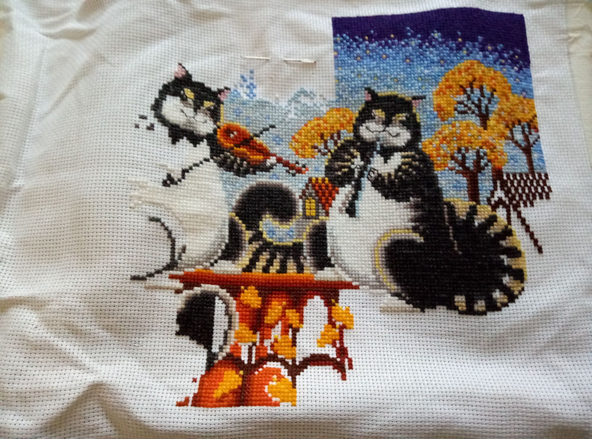 24 марта 2019 Продолжение “Осеннего дуэта”. Шью его в ротации “неделя через неделю”. Результат за неделю получается. Для,тех кто интересовался процессом. Видно как там с одиночками. По сути все что не коты это сплршная россыпь шахматки на небе 7цветов, на деревьях 5 цветов. Поэтому движется медленно, так как шью одной иглой кусочками по цветам. lefkorosida, ЛАДОМИРА, KapRia и 21 других сказали спасибо Поделиться сообщением Ссылка на сообщение