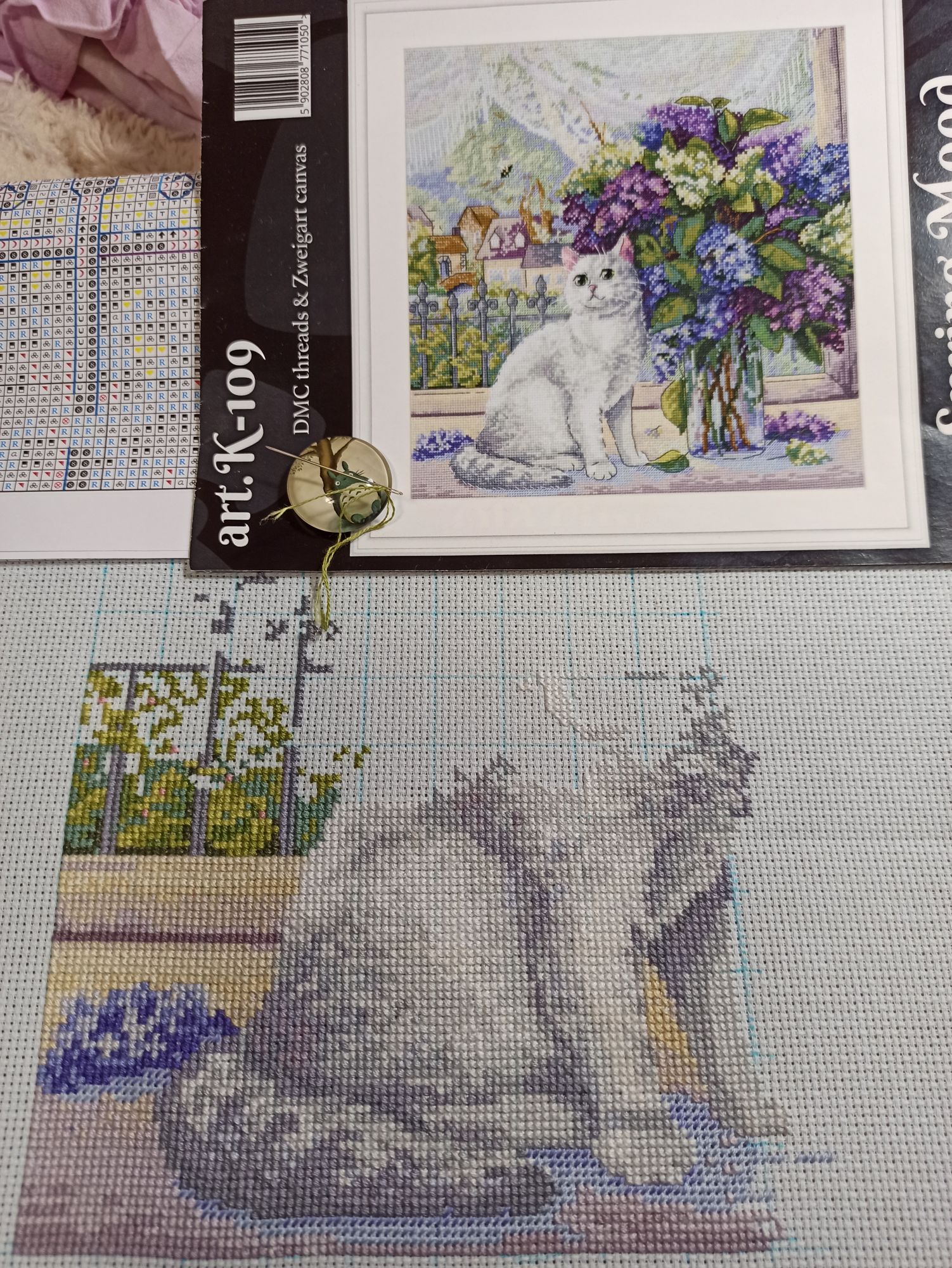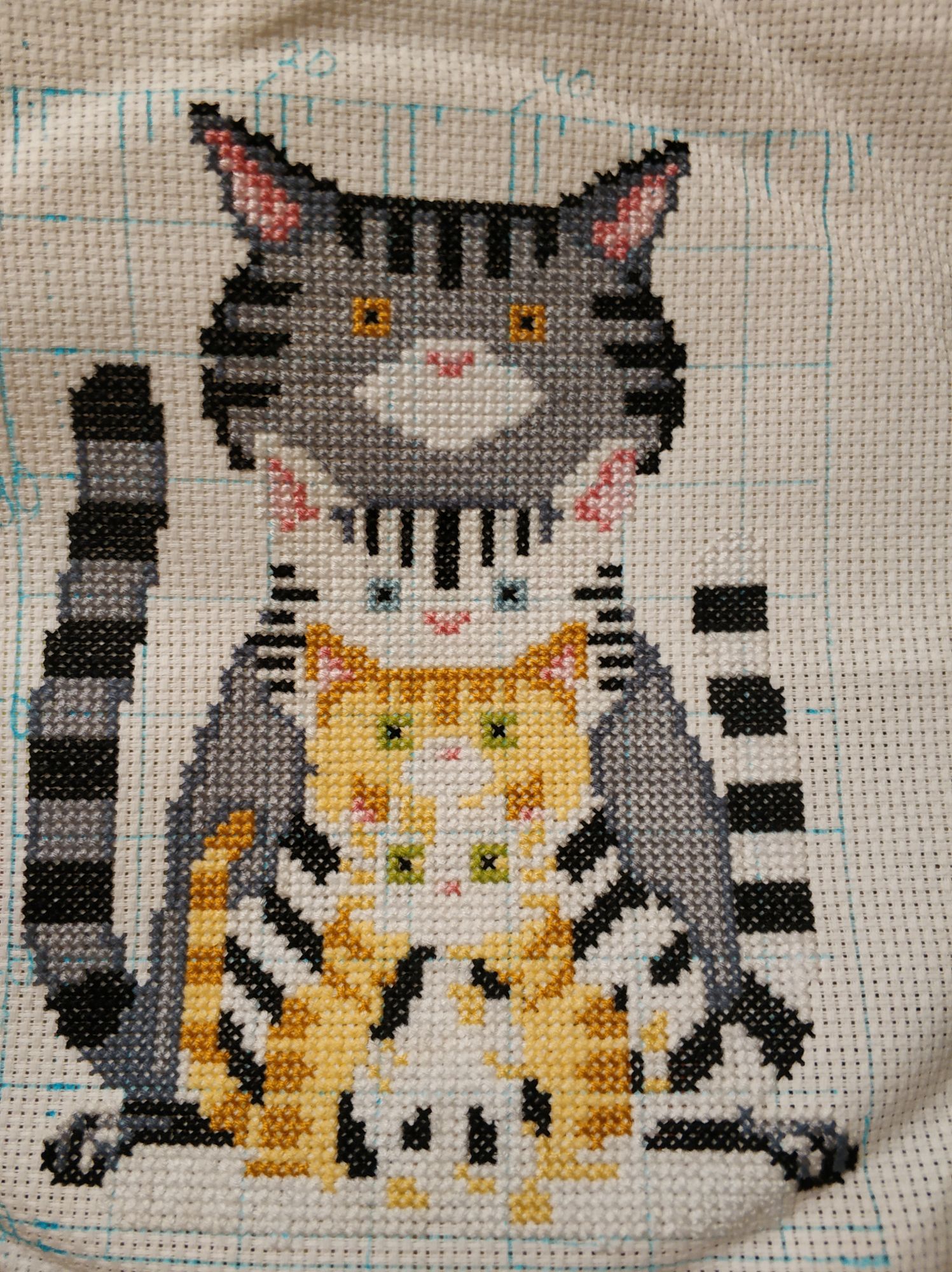 29 января 2021 Вот кот! Чёрный кот) Вышился побыстрее, чем первый, хотя голубые крестики в силу необходимости крепить их по отдельности немного подбесили в один момент, что хотелось плюнуть на свой принцип и сделать протяжки) осталось вышить мотивы на хвостиках, но тут ещё немного предстоит разобраться с расположением мотива, чтоб коты не уехали куда не надо. masha27, герда28, Dasika и 14 других сказали спасибо Поделиться сообщением Ссылка на сообщение