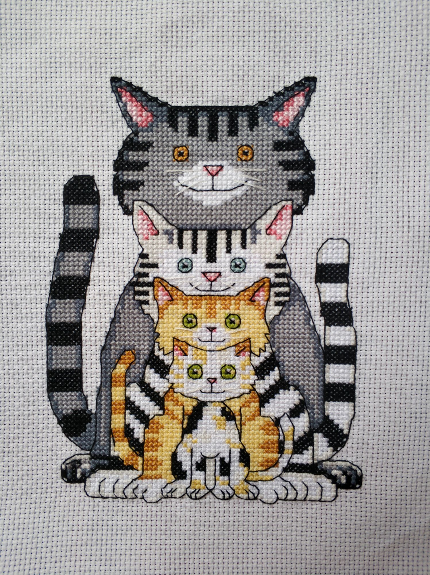28 января 2021 Всем привет! Я к вам с кошачьим семейством от Design works Это будет наш семейный портрет - муж, я и два сына - очень похоже. Вот, что уже нашилось. По набору - схема легкая и понятная, хоть и мелковата. А вот нитки полное г..., особенно черно-серо-белые. По-моему даже катушечные лучше, чем они. Даже странно, давненько такими не шила. kreolka, Fascinata, masha27 и 12 других сказали спасибо Поделиться сообщением Ссылка на сообщение