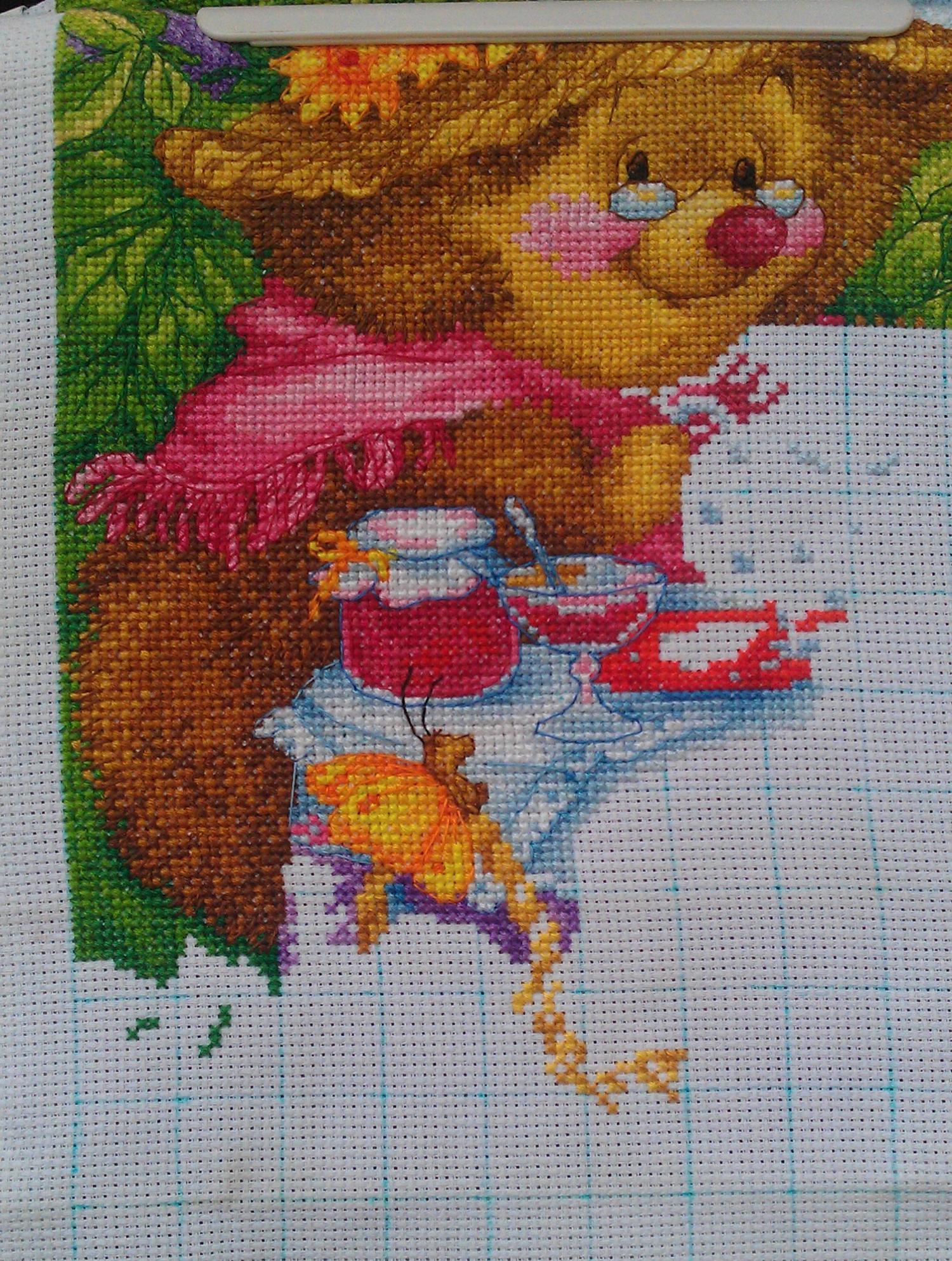 20 января 2014 Я пришла к вам с небольшим показом. 1. Мои любимые ежики. Было: Вышила вторую лапку у бабули, платочек на шее, чайник с кружечкой, и немного скатерти, доделала зелень на заднем фоне, ну и конечно, отбэкала все эти элементы. Стало: 2. Подушка с котиком. Было: Стало: В целом, шьется довольно легко. Большие участки зашиваются одним цветом, так радует отсутствие одиночек и бэка Единственный минус - длинную нить не сделаешь, шерсть мохриться начинает, а так - одни положительные эмоции veravas, Tanya_RTK, Maury и 2 других сказали спасибо Поделиться сообщением Ссылка на сообщение