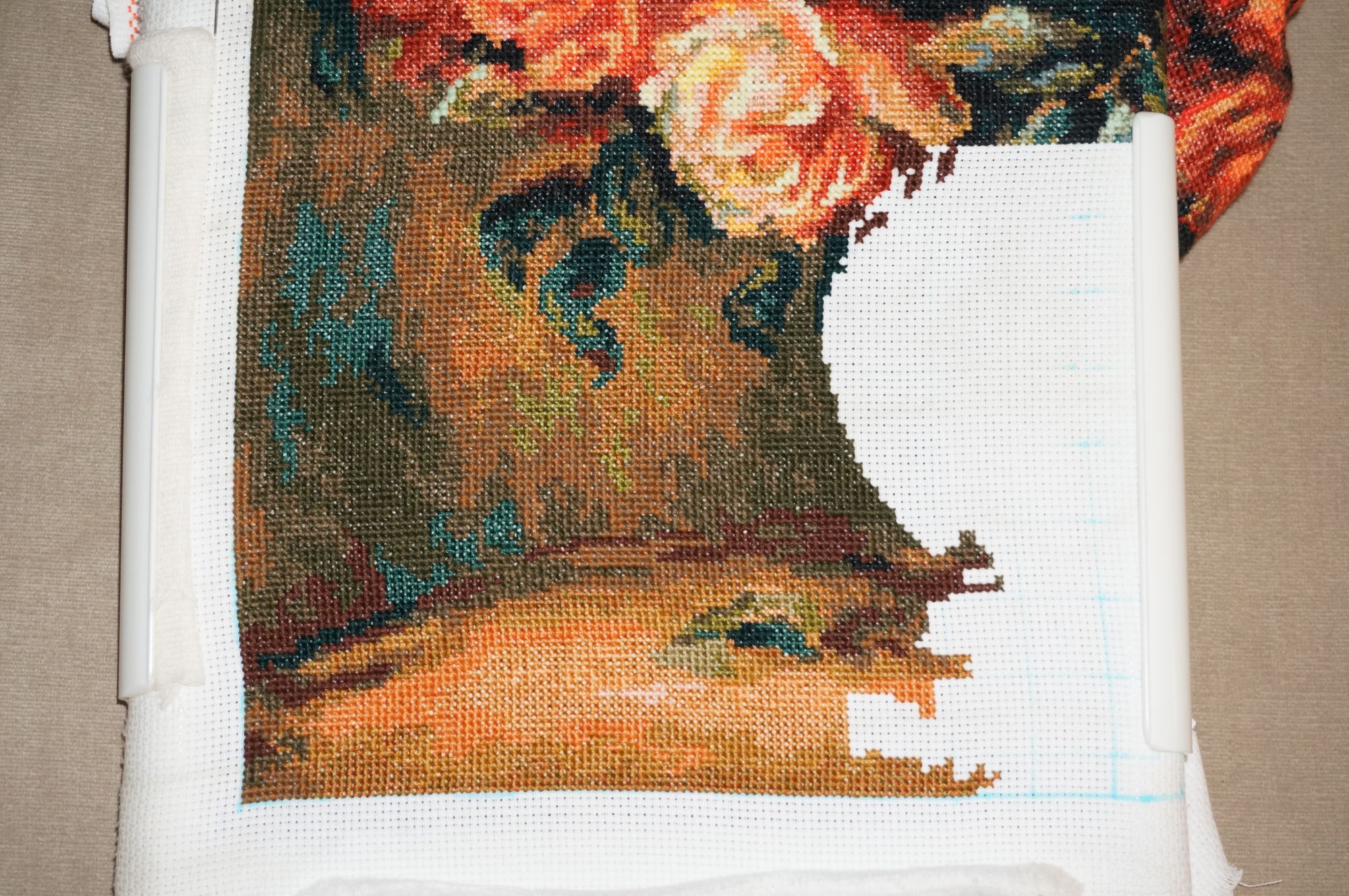 11 июля 2016 Как и говорила - пришла показывать продвижения в розах Ренуара. Был вышит полностью верхний лист (около 2/3 работы) и выглядело это так: А это продолжение. Сейчас перешла на вазочку. ОльгаВл, Yulik, Жекочка и 7 других сказали спасибо Поделиться сообщением Ссылка на сообщение