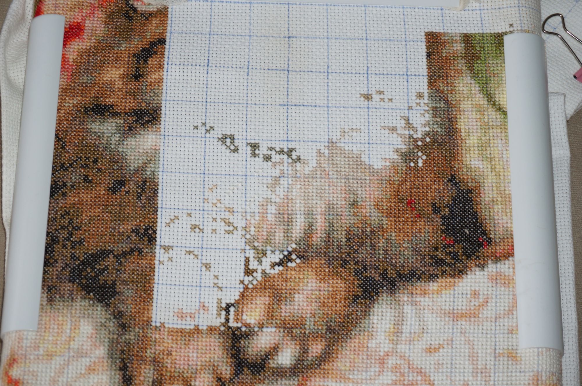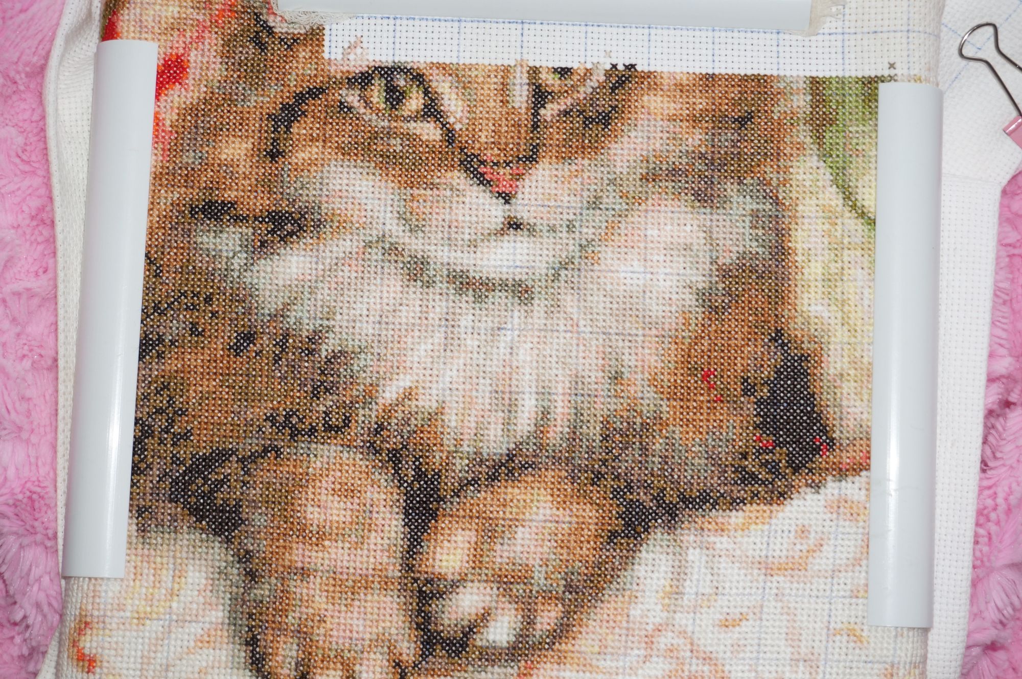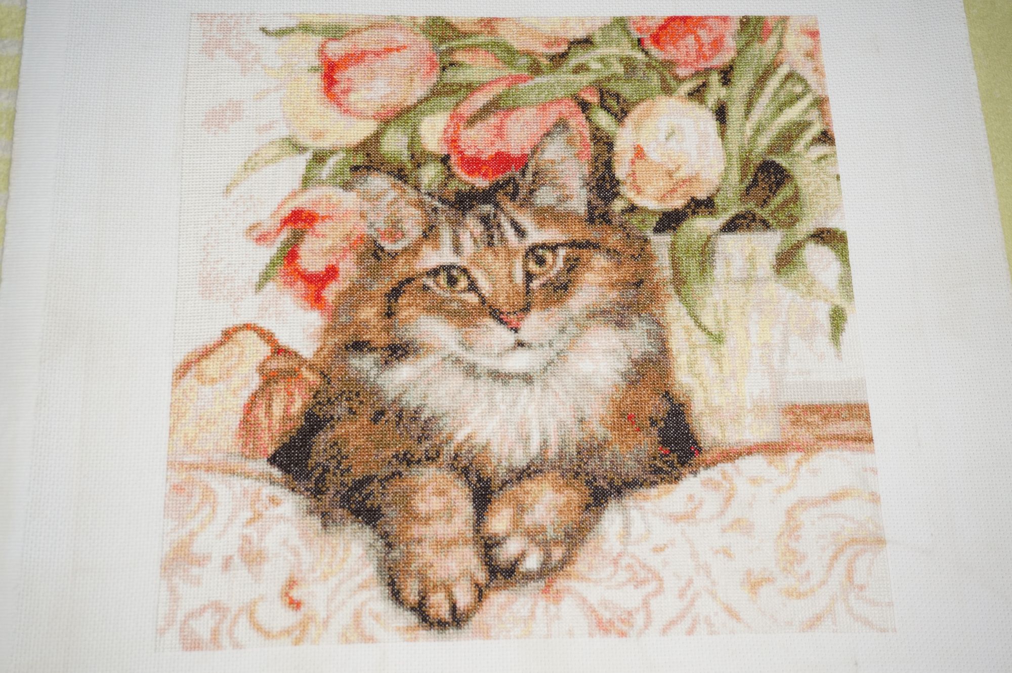 23 февраля 2019 Наконец-то добралась до компьютера Будем озеленять гаечку с процессом кисуни. Итак, набор от КК "Кошка на софе". Это фото последнего листа: Общий вид до стирки (ужас ужасный, какая она у меня грязная ): Стирала два раза и все равно темные пятна не отстирались вокруг вышивки. Одно хорошо - зашивка полная, ниточки все-таки чистые, а все остальное уйдет под раму А это фото уже после стирки и глажки: Впечатления как всегда двоякие - от результата, дизайна и в принципе работы - восторг! Иногда раздражает мешанина значков в схеме. Но у КК именно за счет этой мешанины и получается "Вау-эффект" от картинки Сейчас усердно вцепилась в розовый стаканчик. Видимо поймала кураж от окончания кошечки. Так что думаю, что совсем скоро и его уже готовым покажу. olgaIv, Полли, malenta и 7 других сказали спасибо Поделиться сообщением Ссылка на сообщение