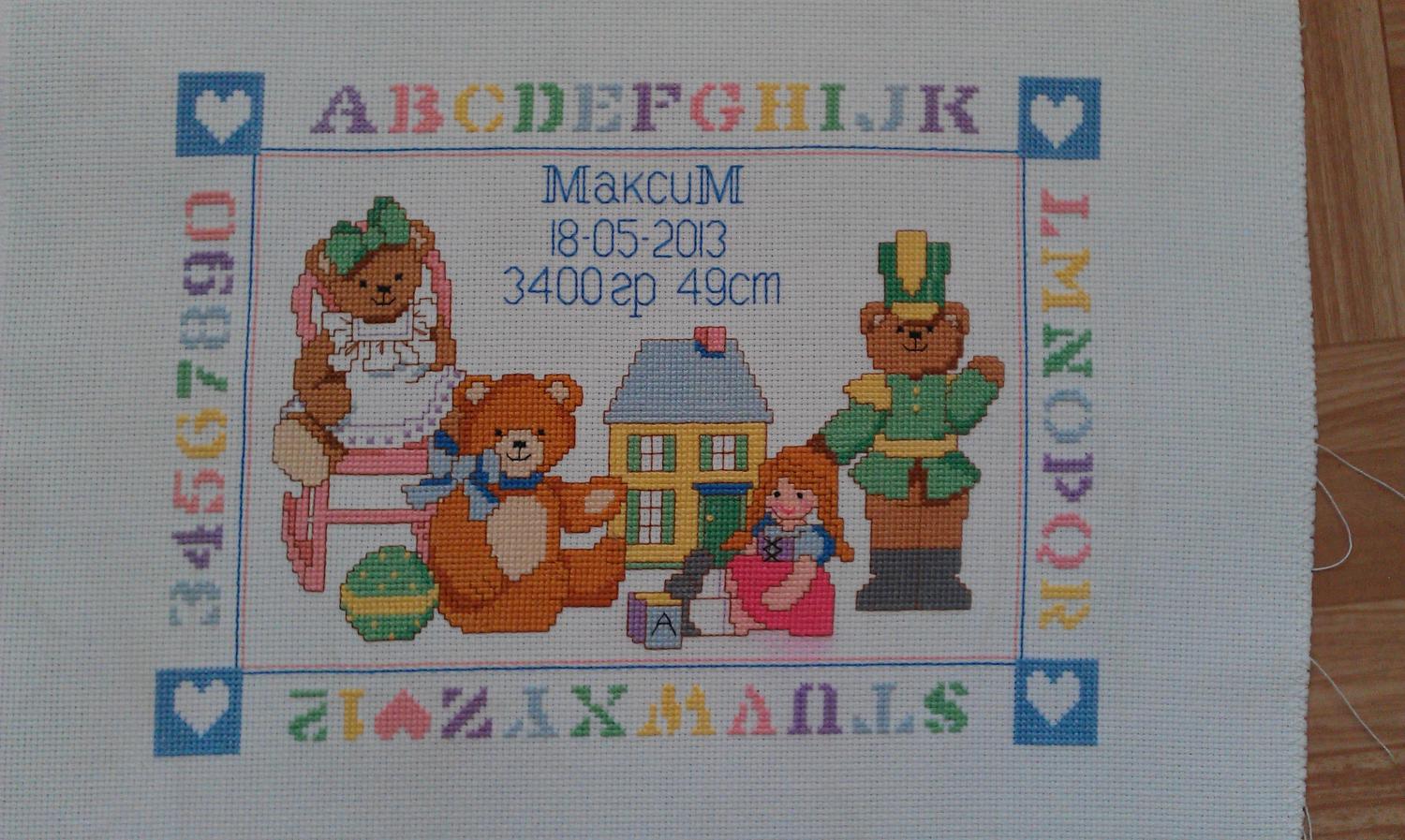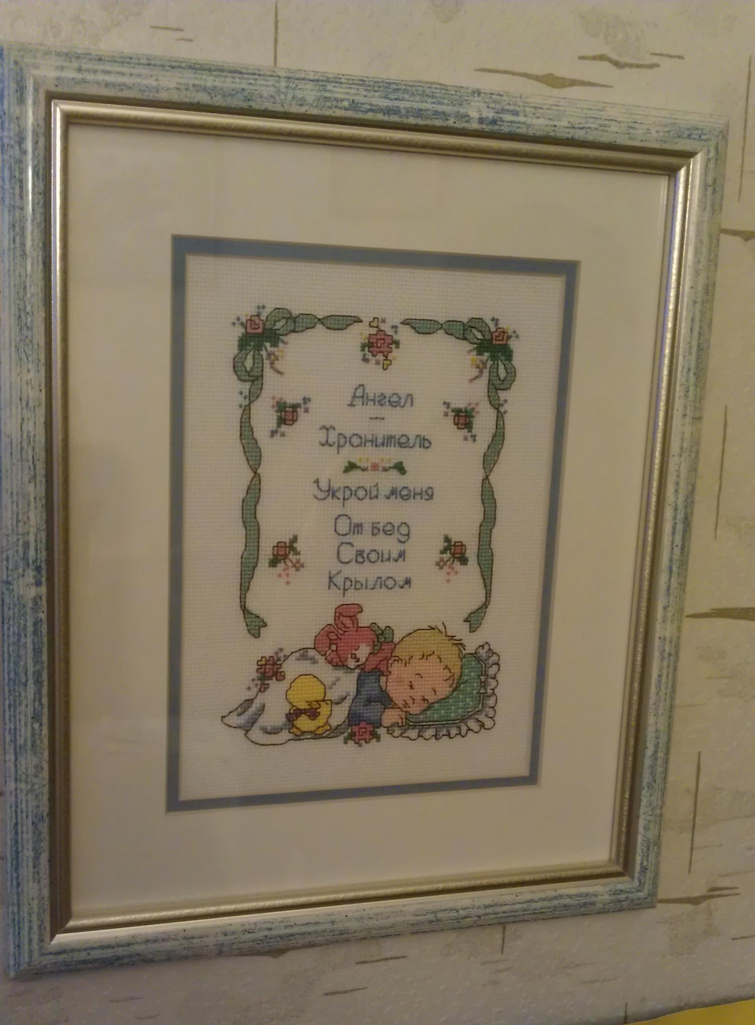 14 июня 2013 Девочки, дорогие мои!! Спасибо большое за поддержку!!! А я сегодня с небольшим показом Волка подрастила совсем немного. Было: Стало: Закончила наконец-то метрику для сыночка. Текст правда мне не очень нравится как получился. Но сделала его из букв, предложенных в наборе. Последнюю букву "М" в имени сделал тоже заглавной, т.к. прописная мне ну никак не хотела подбираться, все время было что-то не то. И муж мне предложил сделать так, как есть сейчас. Целый вечер провозилась с этим текстом, уже не было сил придумывать что-то новое. Так что решила оставить все как есть. Вчера вечером, когда постирала метрику и отгладила, увидела, что у куколки платишко полиняло. Терла да стирала всякими пятновыводителями - ничего не помогло, только немного побледнее стало... Растроилась прям. Решила больше не мучать вышивку, снова отгладила и сегодня увезла на оформление (воспользовалась последними деньками присутствия мужа дома) Мишкам добавила улыбочки, чтобы они не были такими грустными, как предлагает производитель, и у медведицы на стуле не стала делать темную полосу между глаз, а то было такое ощущение, что у нее брови срослись на лбу А еще покажу оформленный подарок для племянников. Его подарили уже почти две недели назад, фотографировали наспех, вечером. Буквально сфоткали и сразу увезли. Так что фото не очень получилось, но другого к сожалению нет. Сестре мужа подарок очень понравился. Как она сказала, не ожидала, что я для ее семьи что-то вышью А я тут вся такая внезапная У нее сейчас сложная жизненная ситуация, так что надеюсь, что все добрые и теплые чувства, с которыми я шила Ангела-хранителя, помогут ей и деткам справиться с ней и эта картинка будет своего рода оберегом. Еще остались не показаны две маленькие картинки-отдыхалочки (одна вышита на даче, вторая в роддоме), но я все никак не доберусь до и оформления в рамочки. Juliette, t-a-t-a, Eleonoro4ka и 2 других сказали спасибо Поделиться сообщением Ссылка на сообщение