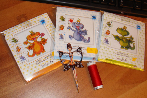 А я на днях в магазин за нитками забежала:post-10681-1320997285_thumb.jpg Нитки купила, ага. B) А заодно - дракош. Ну и ножнички симпатичные заодно прихватила, коробку с которыми коварно выставили прям у кассы.