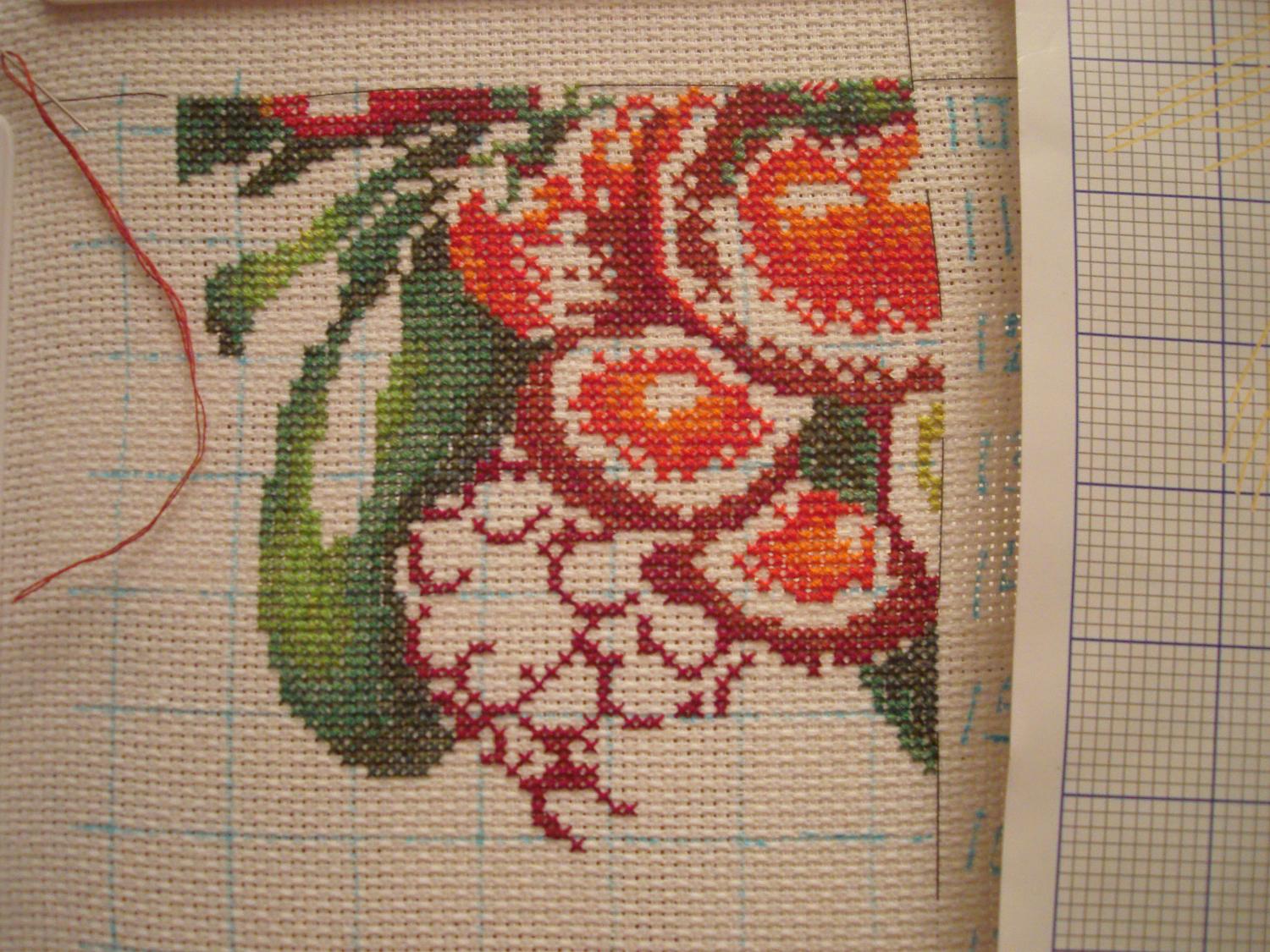 19 октября 2011 Ну вот, выкладываю отчет по первому этапу Робина. Я шила Дерево изобилия ( китайский набор от Рикки ). Шилось довольно легко и интересно- нитки яркие, веселые, схема цветная, четкая. Я хотела вышивать другой лист, но сынуля попросил вышить именно этот. Шила стараясь, поэтому приходилось несколько раз переделывать ( это у меня во всем такая фишка есть- чем больше стараюсь, тем больше ошибок допускаю). Единственное что боюсь, вдруг я Викулю не так поняла и неправильно начала шить, хотя прикинула, что все будет достаточно симметрично. Думаю, что дерево получится очень жизнерадостным и веселым. Может быть, когда-нибудь, вышью и себе на кухню такое, только заменю канву на более мелкую. На таком каунте я бы вышила работу в 3 нити- мне кажется, что канва сильно светит. Поделиться сообщением Ссылка на сообщение